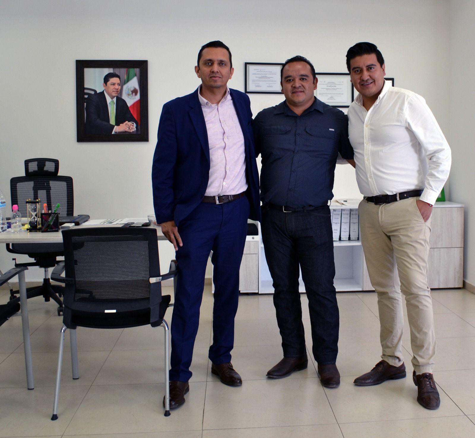 Con el mismo propósito, se reunió con el alcalde de Villa de Reyes, Daniel Lagunas López, para entregar los resultados de las evaluaciones que se aplicaron a los elementos de seguridad de nuevo ingreso, donde reconoció el esfuerzo del ayuntamiento por cumplir los compromisos adquiridos y los procesos de evaluación que se contemplan en la normatividad vigente.