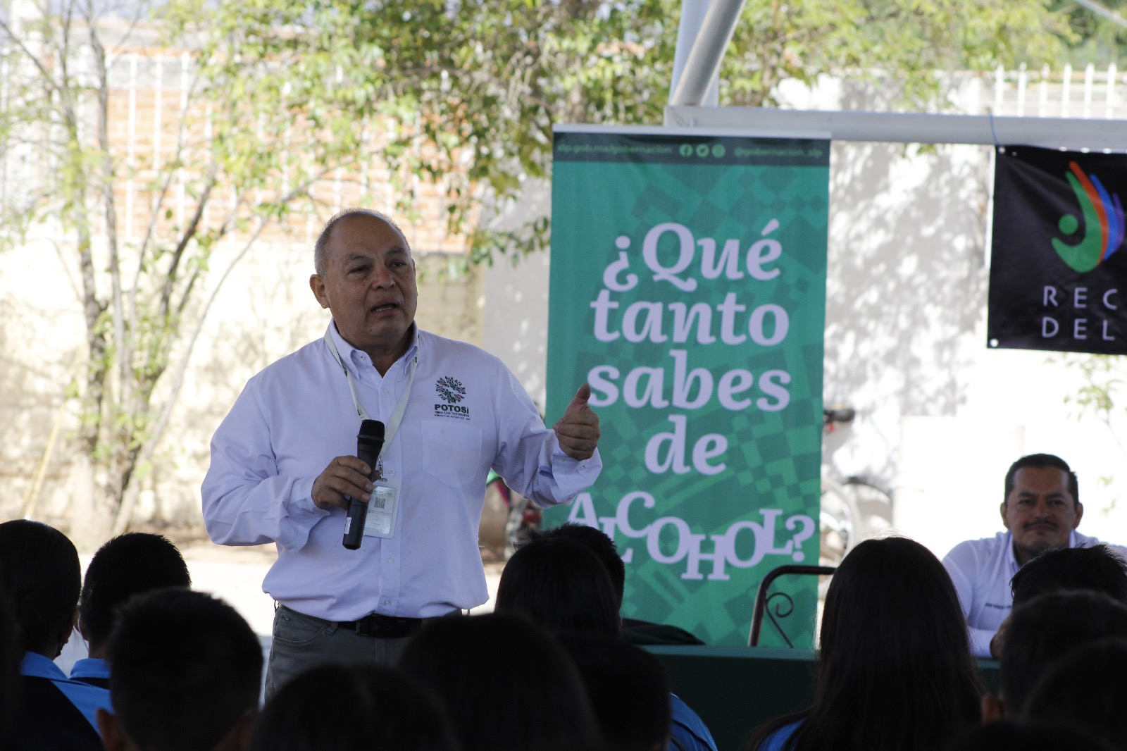 Mexquitic de Carmona, SLP. – En el esfuerzo interinstitucional para inhibir adicciones entre la comunidad estudiantil de las cuatro regiones del Estado, tal y como lo ha instruido el Gobernador de San Luis Potosí Ricardo Gallardo Cardona, personal de la Dirección General de Gobernación, llevó a cabo el taller “¿Qué tanto sabes del alcohol?”, a estudiantes de telesecundarias, donde advirtió sobre el consumo, desmitificó supuestos de este tipo de bebidas, y además abordó otros temas de interés para los jóvenes.