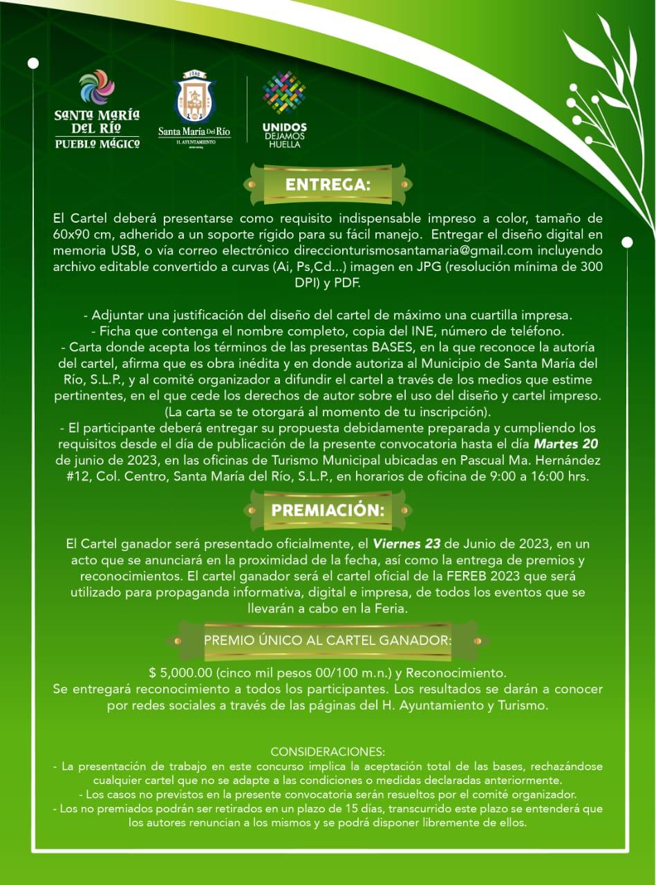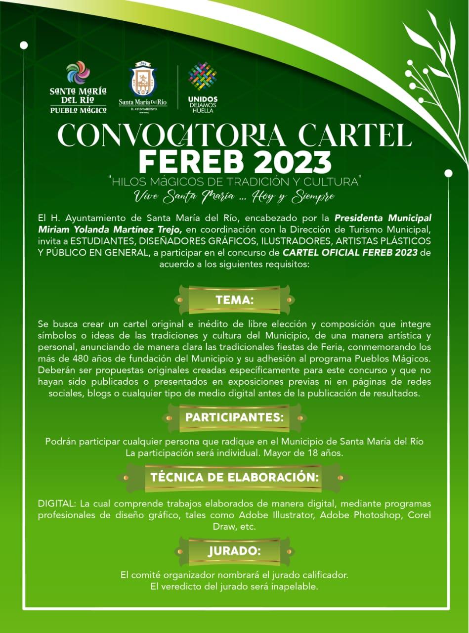 • Los interesados en participar podrán entregar su propuesta hasta el próximo 20 de junio y aspirar a ganar el premio económico, así como ser la imagen de esta edición del magno evento de Santa María del Río.