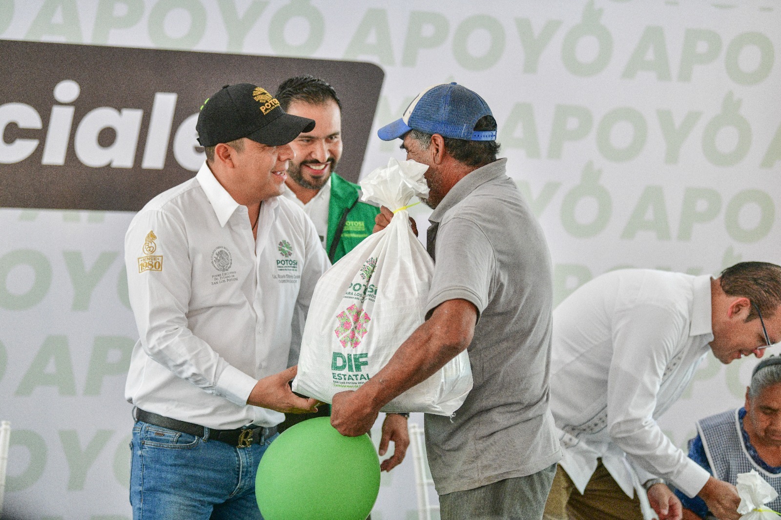 RICARDO GALLARDO LLEVA APOYO ALIMENTARIO A POZOS • Este año se beneficiarán 600 mil familias de todos los rincones de la Entidad, porque sí hay apoyo para elevar