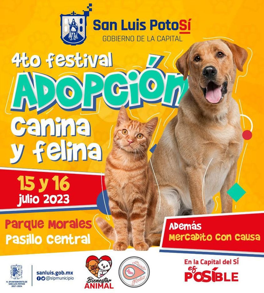“Cuando adoptas una mascota, estás salvando una vida” es una frase profunda, pero verdadera a la que le da especial seguimiento el Gobierno Municipal de San Luis Potosí y así lo demuestra al organizar la que será ya la cuarta edición del Festival de Adopción Canina y Felina.