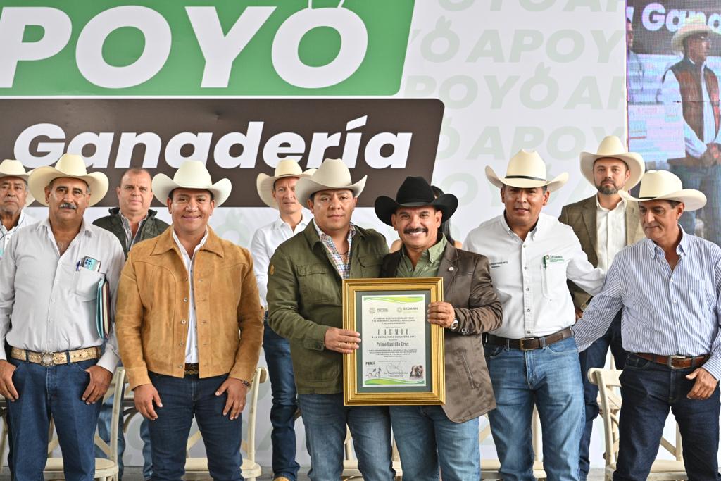 El Mandatario Estatal entregó a los presidentes e integrantes de las diferentes asociaciones ganaderas en el Estado, reconocimientos a la trayectoria en ganado bovino, así como a la excelencia ganadera 2023 por aportación al desarrollo de la genética por su crianza de ganado brahmán; también se entregaron remolques ganaderos como parte del Programa de Equipamiento y se hizo entrega de otros apoyos, demostrando con ello el decidido respaldo que se brinda para impulsar a la producción ganadera.