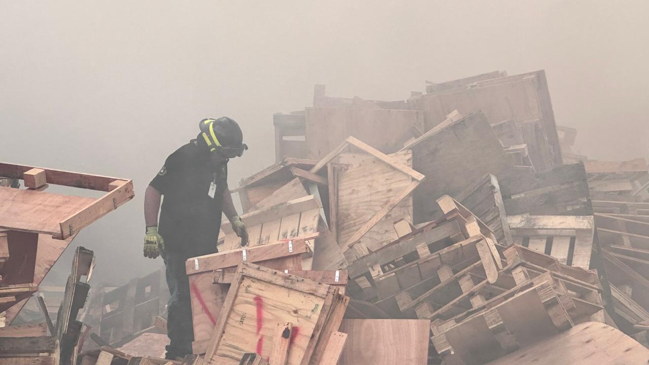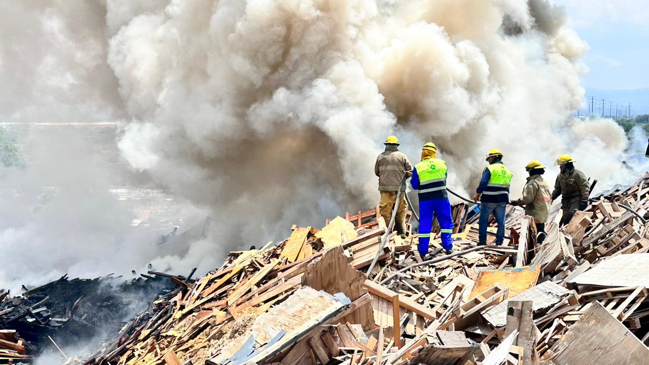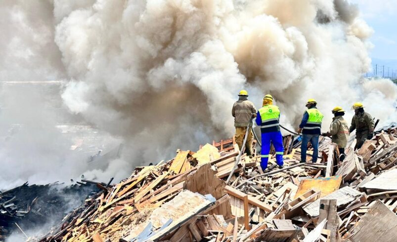 GOBIERNO ESTATAL ATIENDE INCENDIO EN TARIMERA • Protección Civil Estatal lleva 12 horas de trabajo para tratar de controlar el fuego, debido al material se ha