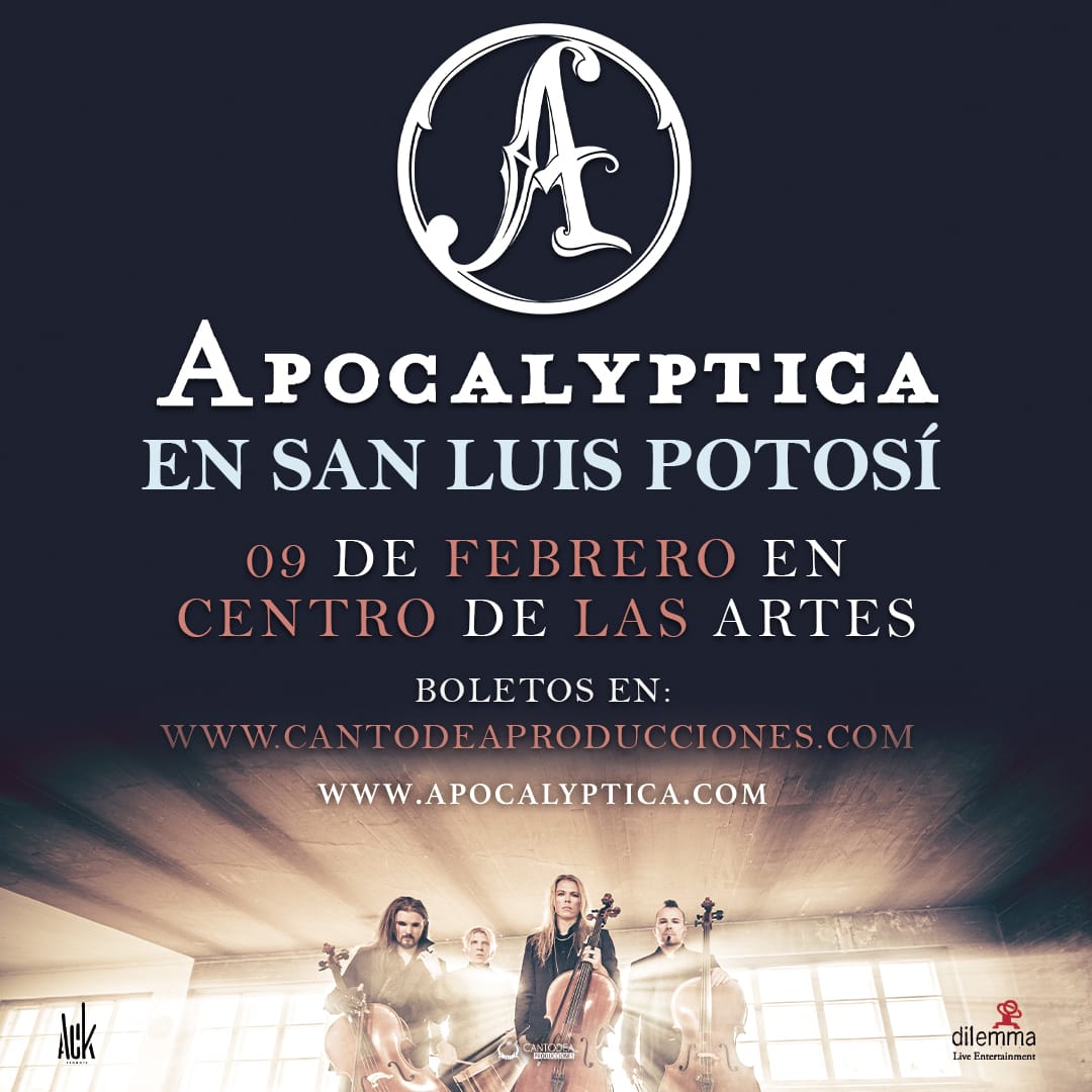 Apocalyptica conformada en 1992, ha hecho colaboraciones con Celine Dion, Metallica, The Rasmus, incluso con Till Lindemann de Rammstein, por lo que será una gran oportunidad para que las y los potosinos disfruten este gran concierto gracias al apoyo que brinda el Gobierno Estatal en acercar eventos de gran calidad.