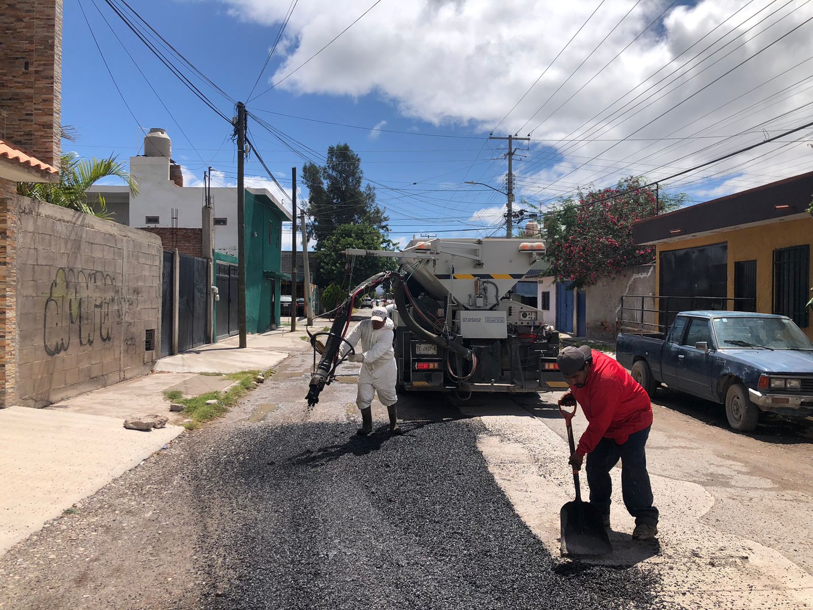 – Se realizaron trabajos con material de mezcla asfáltica y con concreto en varias zonas de la ciudad.
