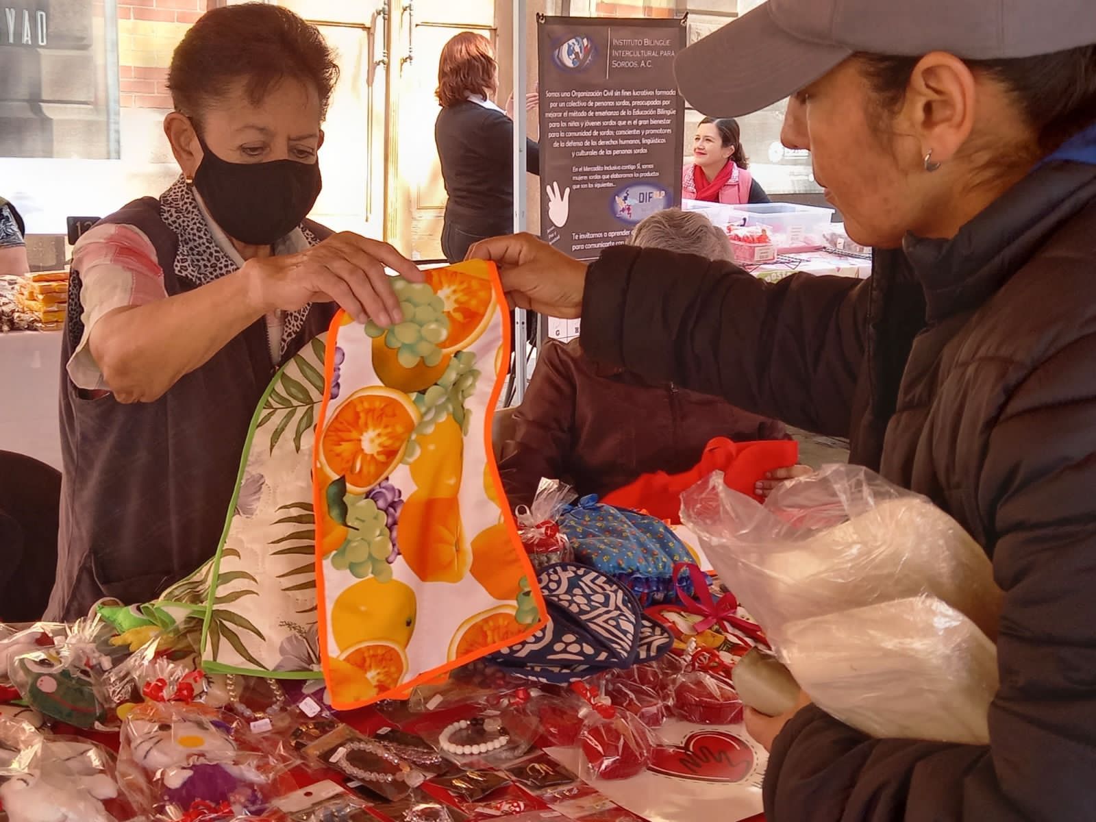 «Se les apoya para que tengan presencia en diversos puntos de la ciudad, con el fin de que la población conozca lo que elaboran, pero además, ponen a la venta estos productos porque se ayudan para sus gastos, se sienten útiles, desarrollan habilidades e intercambian experiencias con sus semejantes», explicó la Directora del DIF Municipal, Jessica Albarrán Ramírez.