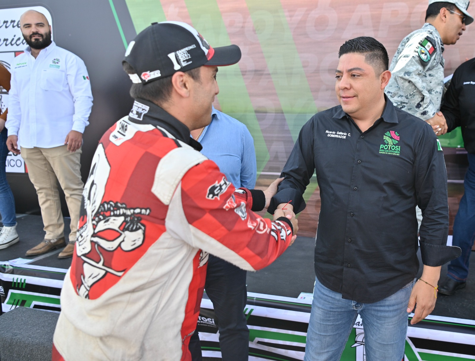 Previo al banderazo de arranque, el director de la carrera panamericana, Carlos Alberto Cordero, así como el piloto potosino Ricardo Cordero, agradecieron al Gobernador Ricardo Gallardo, por todo el apoyo para garantizar con el respaldo de la Guardia Civil Estatal (GCE) y la Coordinación Estatal de Protección Civil (CEPC), entre otras corporaciones, la seguridad de los pilotos en su trayecto por las carreteras potosinas y por impulsar la promoción de este gran evento que aglutina a representantes de varios países.