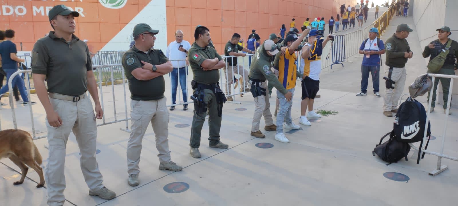 Detalló que, se intensificarán las revisiones para evitar el ingreso de armas, objetos prohibidos o cualquier tipo de bebida, esquema que se complementará con la participación de los binomios caninos K9, además de que, en caso de detectar camiones o camionetas con grupos de porra, serán retirados de las inmediaciones. En las puertas de acceso al estadio, no se permitirá el ingreso a grupos organizados del equipo visitante.