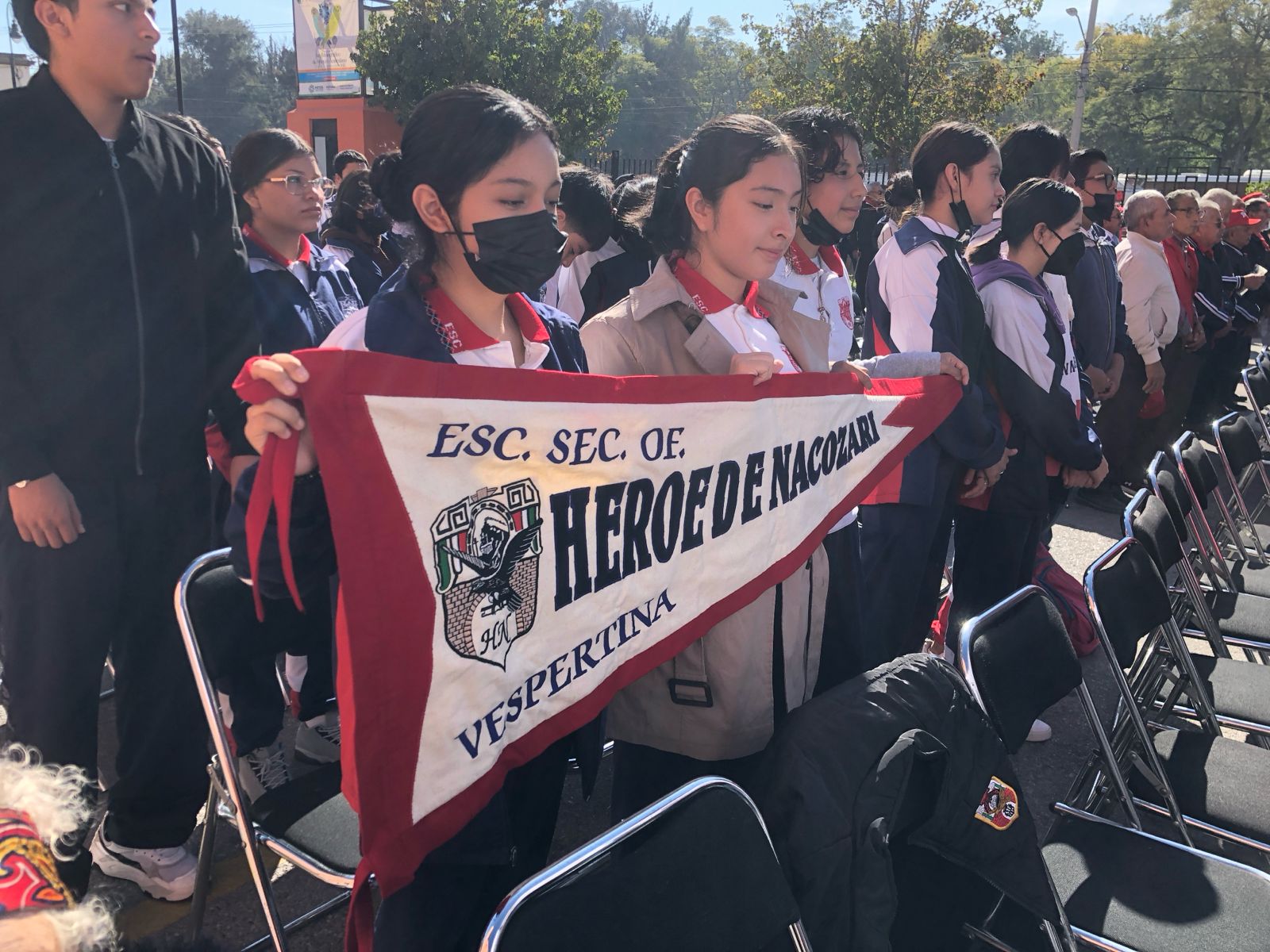 En representación del Gobernador Ricardo Gallardo, la titular de la Secretaría Técnica del Gabinete, Nohemí Proal Huerta, encabezó la ceremonia en la que se rindió homenaje a Jesús García Corona, con la presencia de ex trabajadoras y ex trabajadores de la paraestatal Ferrocarriles Nacionales de México, así como alumnas y alumnos de la escuela “Primaria Héroe de Nacozari”.