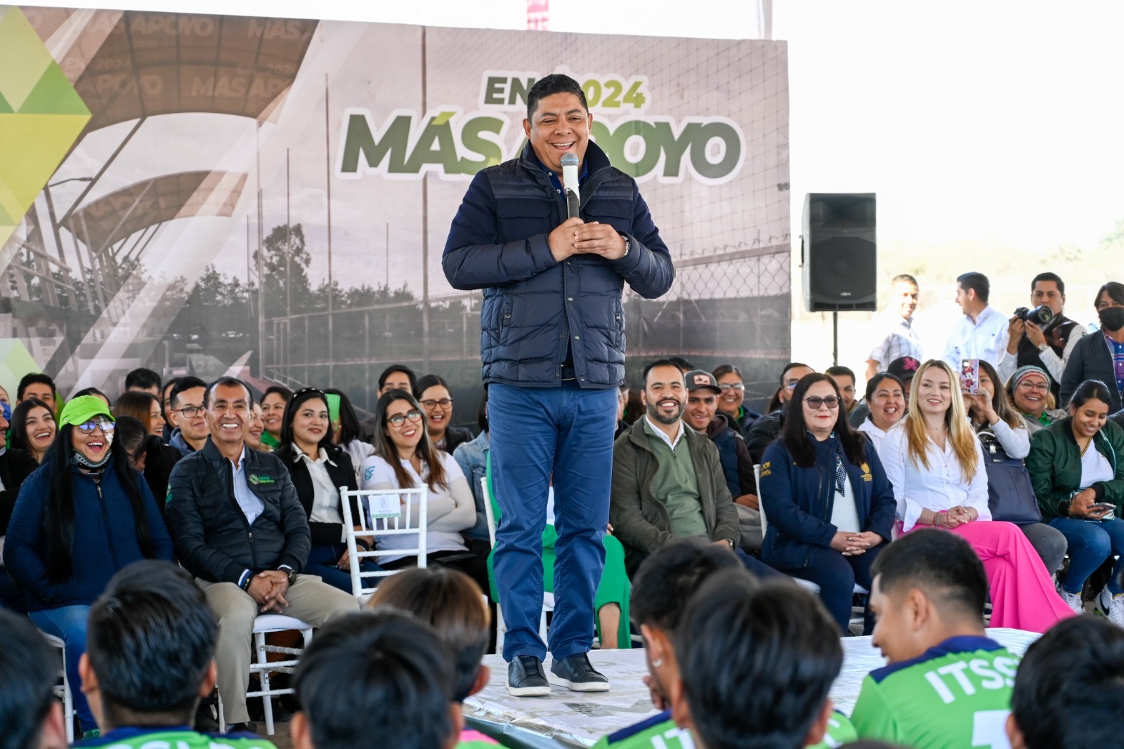 La comunidad educativa del Instituto Tecnológico Superior de San Luis Potosí (ITSSLP), agradeció al Gobernador Ricardo Gallardo Cardona, por cumplir con su promesa y entregar la cancha de fútbol e iniciar la construcción del gimnasio, lo que les permitirá acceder a un desarrollo integral, sumando la formación deportiva, el ejercicio y la promoción de una vida saludable.