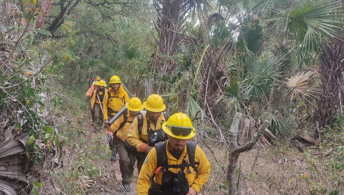 La dependencia detalló que, en Laguna de Patos, trabajan 150 brigadistas de la Comisión Nacional Forestal (Conafor), Secretaría de la Defensa Nacional (Sedena), Guardia Nacional, Protección Civil del Estado y de los municipios de Ciudad del Maíz, El Naranjo y Rioverde, además de brigadistas comunitarios, apoyados con dos aeronaves: un M1 del ejército y uno más del Gobierno del Estado.