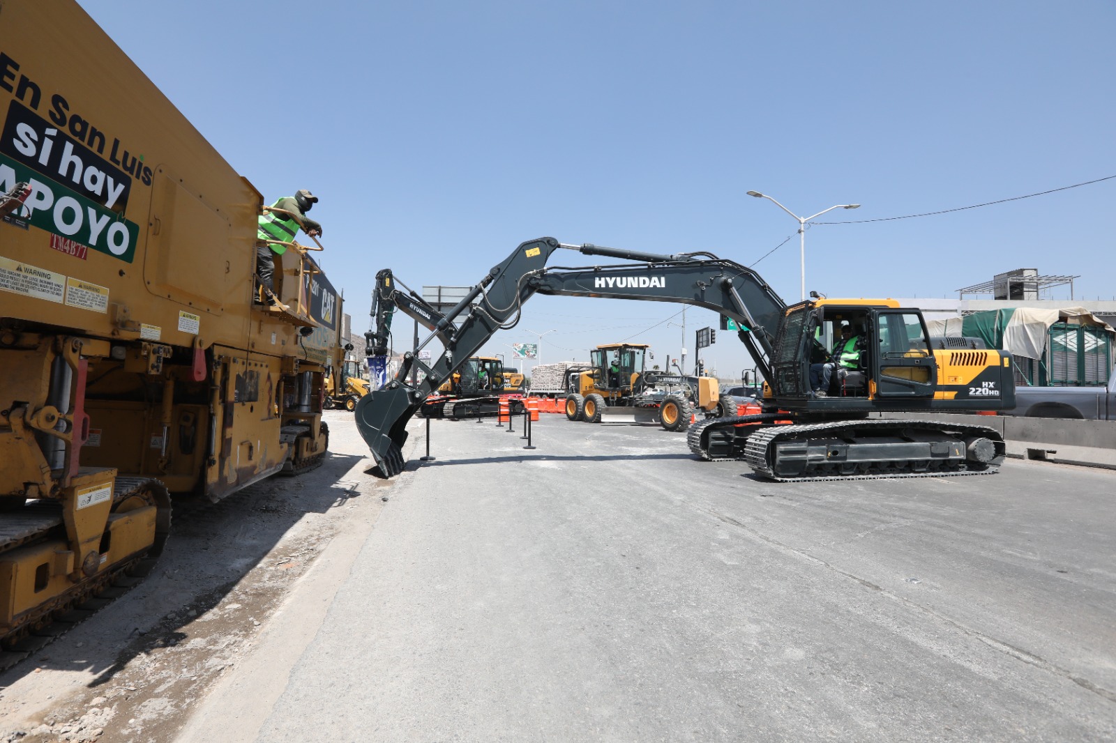 Finalmente en la región Media se continúa trabajando en el Boulevard Bicentenario que conectará a Rioverde y Ciudad Fernández, junto con la vía libre que se extenderá hasta Cerritos y en el Altiplano se han presentado avances en la carretera de cuatro carriles de Ahualulco.