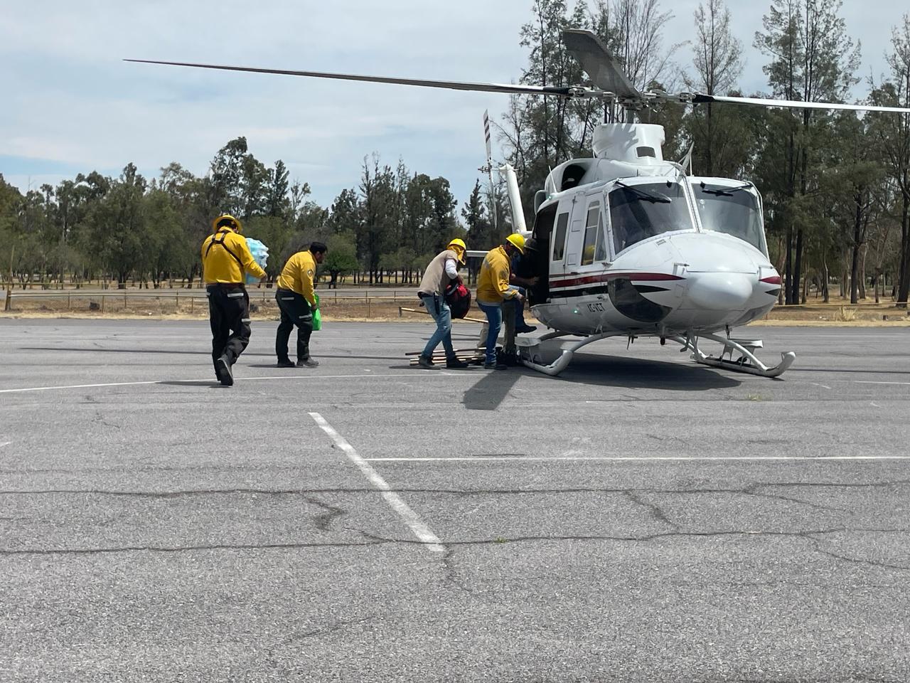 El Poder Ejecutivo del Estado, anunció que desde este lunes, las y los brigadistas de los tres niveles de Gobierno comunitarios y voluntarios que trabajan para controlar y apagar el incendio forestal en Santa María del Río, tendrán a su disposición dos helicópteros para descarga de agua y traslado de personal a las zonas afectadas.