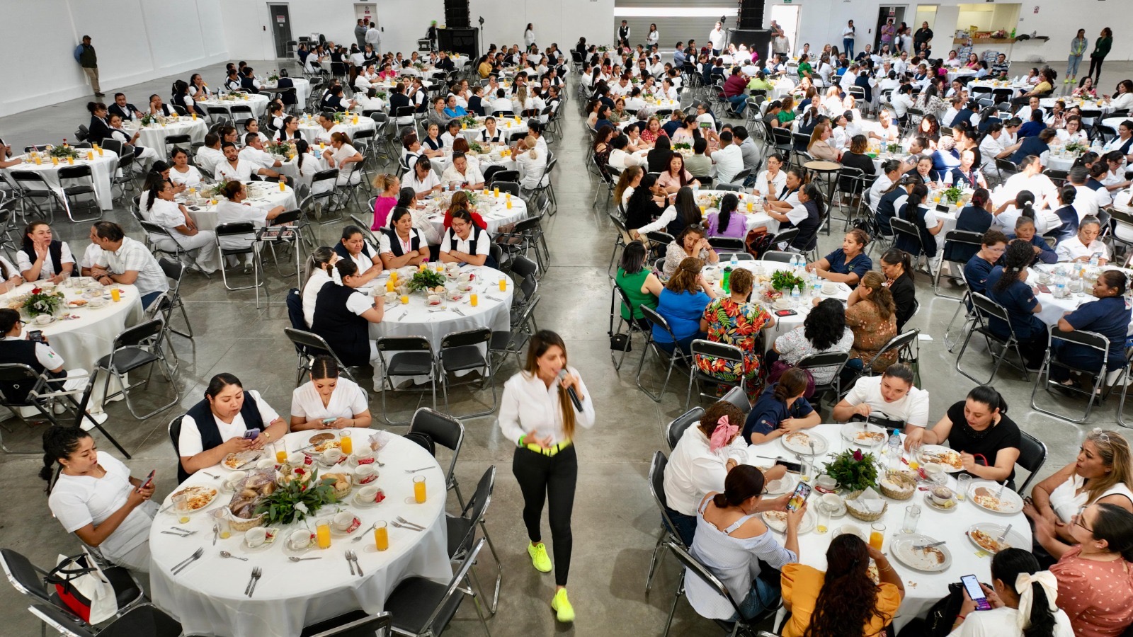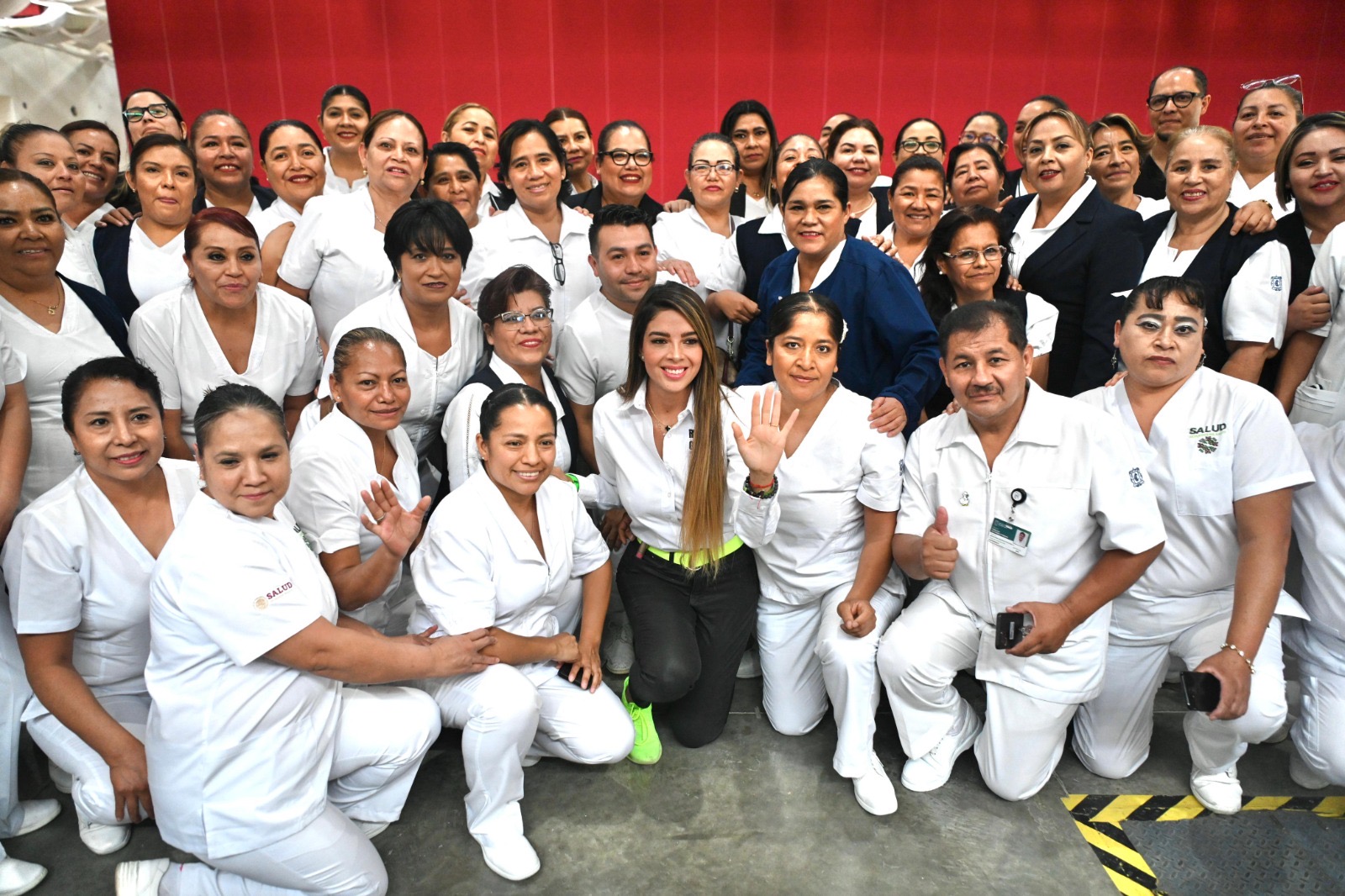 Por la mañana se reunió con enfermeras y enfermeros del Sector Salud a quienes ofreció el apoyo total para ser en vínculo con la Federación a fin de que tengan certeza laboral.