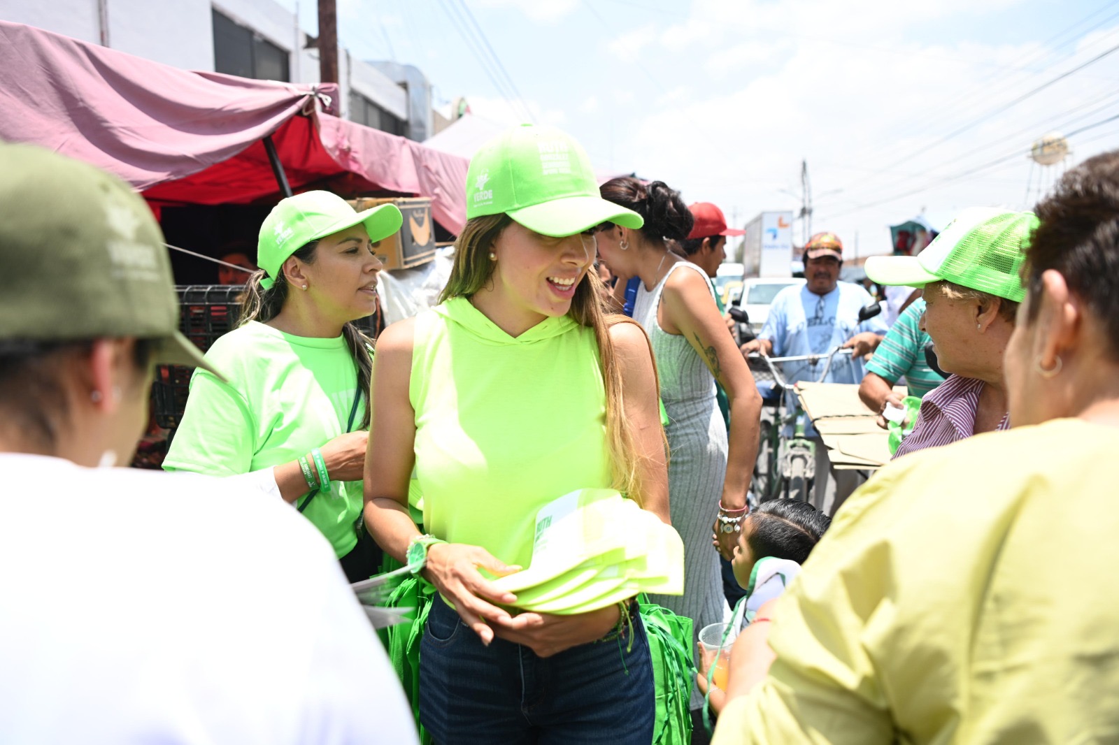 El Sol intenso y la temperatura que superó los 35 grados centígrados en la capital potosina no fueron obstáculo para que Ruth González se entrevistara con comerciantes y trabajadores de la zona del Rastro ante los que se comprometió a gestionar recursos para que el Gobierno del cambio duplique los apoyos sociales en beneficio directo de sus familias.