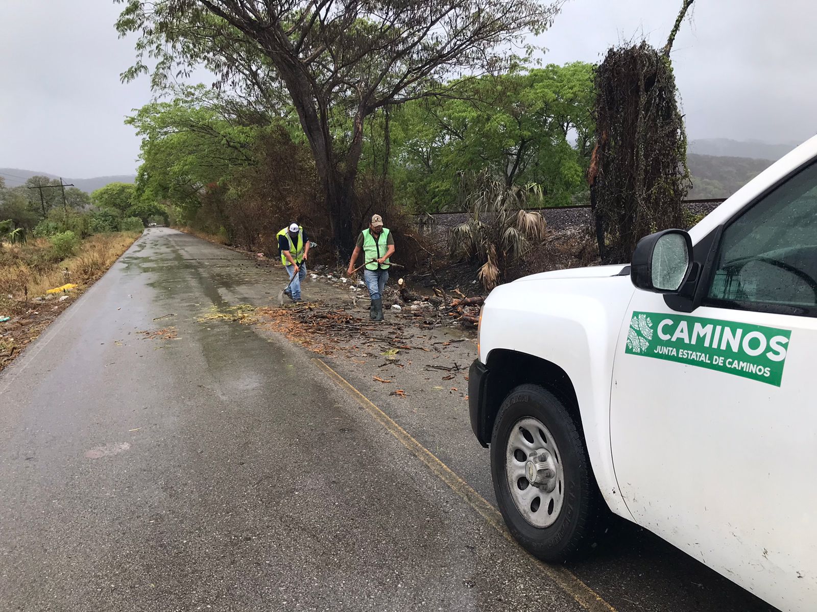Las cuadrillas de la Junta Estatal de Caminos reportan los caminos recorridos en atención a derrumbes, caídas de piedras, drenaje en encharcamientos, retiro de maleza y árboles desplomados: