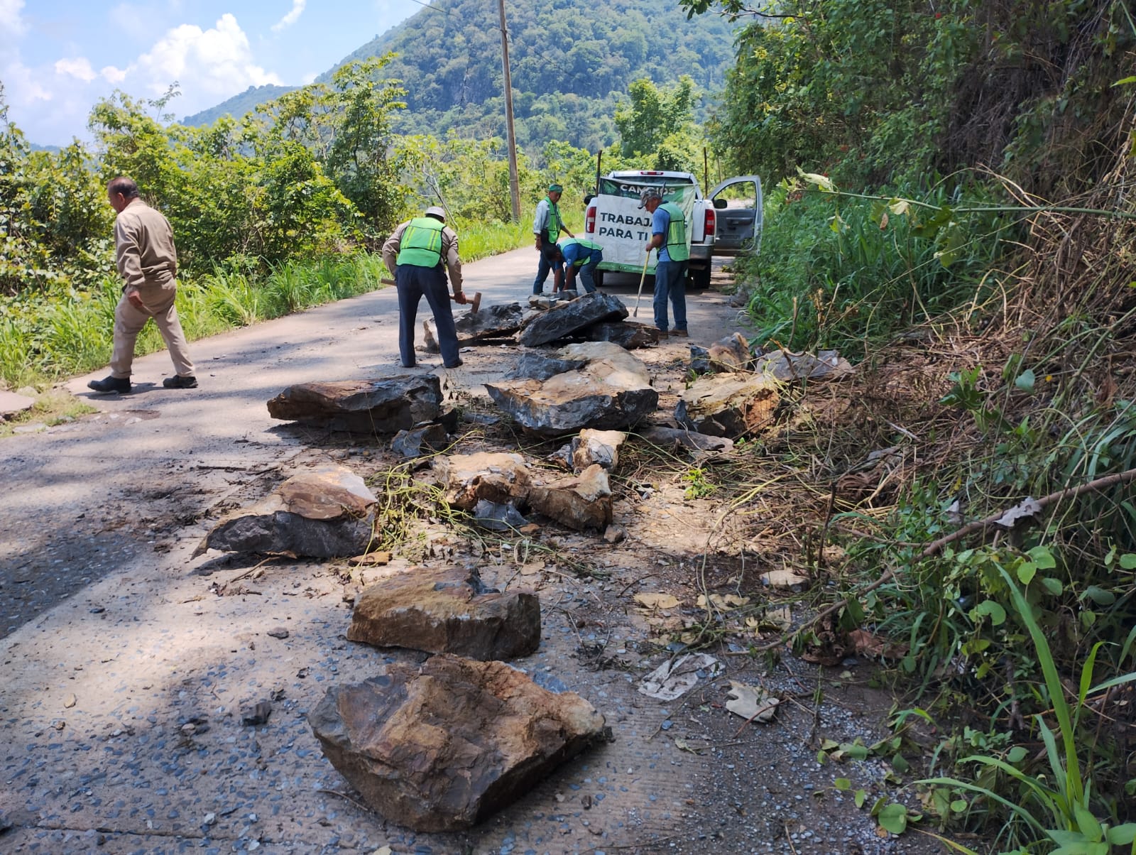 El titular de la JEC, Francisco Reyes Novelo, dijo que, en cumplimiento a la instrucción del Gobernador Ricardo Gallardo Cardona de garantizar la movilidad en caminos y carreteras del Estado, cuadrillas de la dependencia realizaron labores de retiro de derrumbes y piedras con maquinaria especializada, retiro de maleza y árboles desplomados sobre las rúas y desagüe de encharcamientos que representan un grave riesgo para un tránsito seguro.