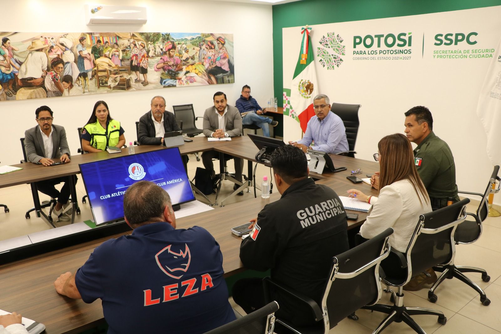 Por instrucción del Gobernador del Estado, Ricardo Gallardo Cardona, el titular de la Secretaría de Seguridad y Protección Ciudadana del Estado (SSPCE), José Luis Ruiz Contreras encabezó un encuentro, al que asistió Héctor Canchola, Comisario de la Liga Mx, así como titulares y representantes de las instituciones de seguridad y procuración de justicia, donde se establecieron las líneas de acción, incluyendo el seguimiento y monitoreo de las cámaras de videovigilancia.