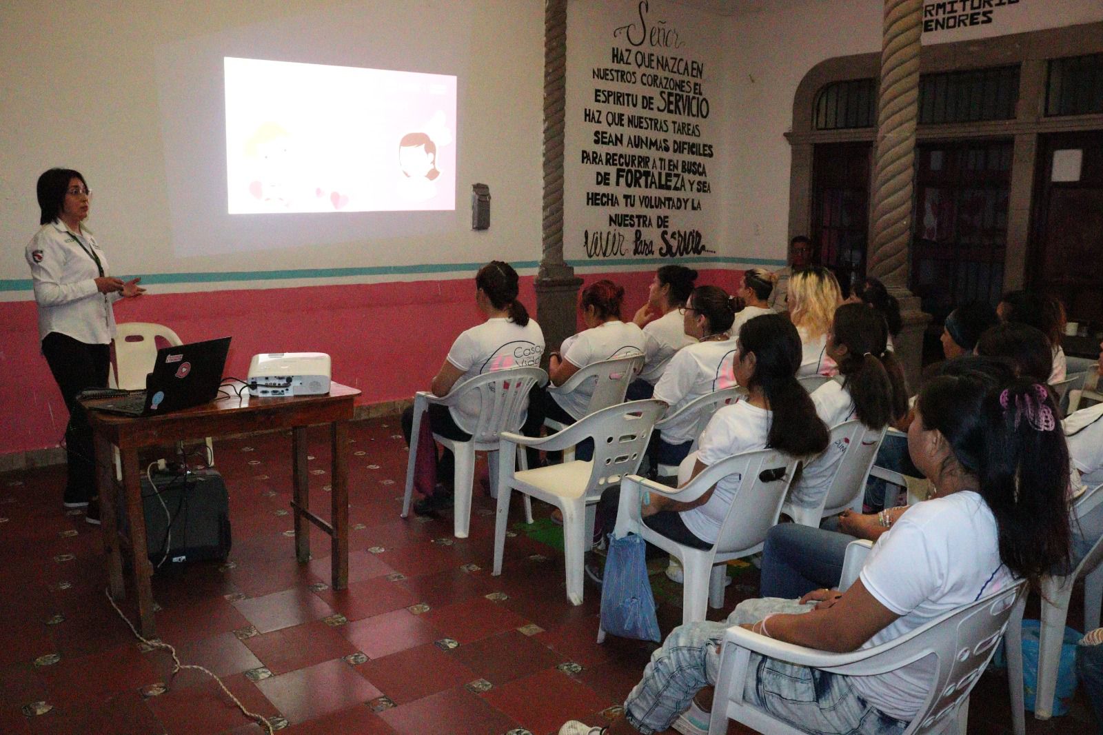 Durante la charla, personal del SECESP destaca la importancia de cómo identificar una relación de pareja con violencia, así como sus consecuencias; por ello, se les explica los diferentes tipos de violencia que se pueden experimentar en la pareja, que van desde la psicoemocional, física, sexual y contra los derechos reproductivos.