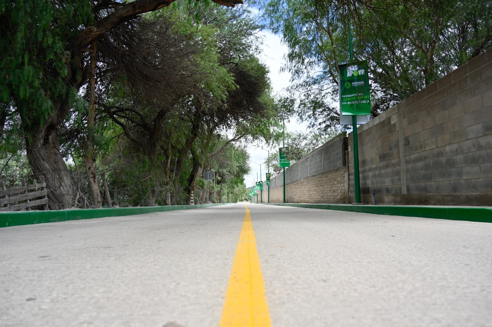 RICARDO GALLARDO MODERNIZA CERRO DE SAN PEDRO • Con la pavimentación de la calle Juárez, en Portezuelo, que entregó el Gobernador mejorará la movilidad y accesibilidad, para un