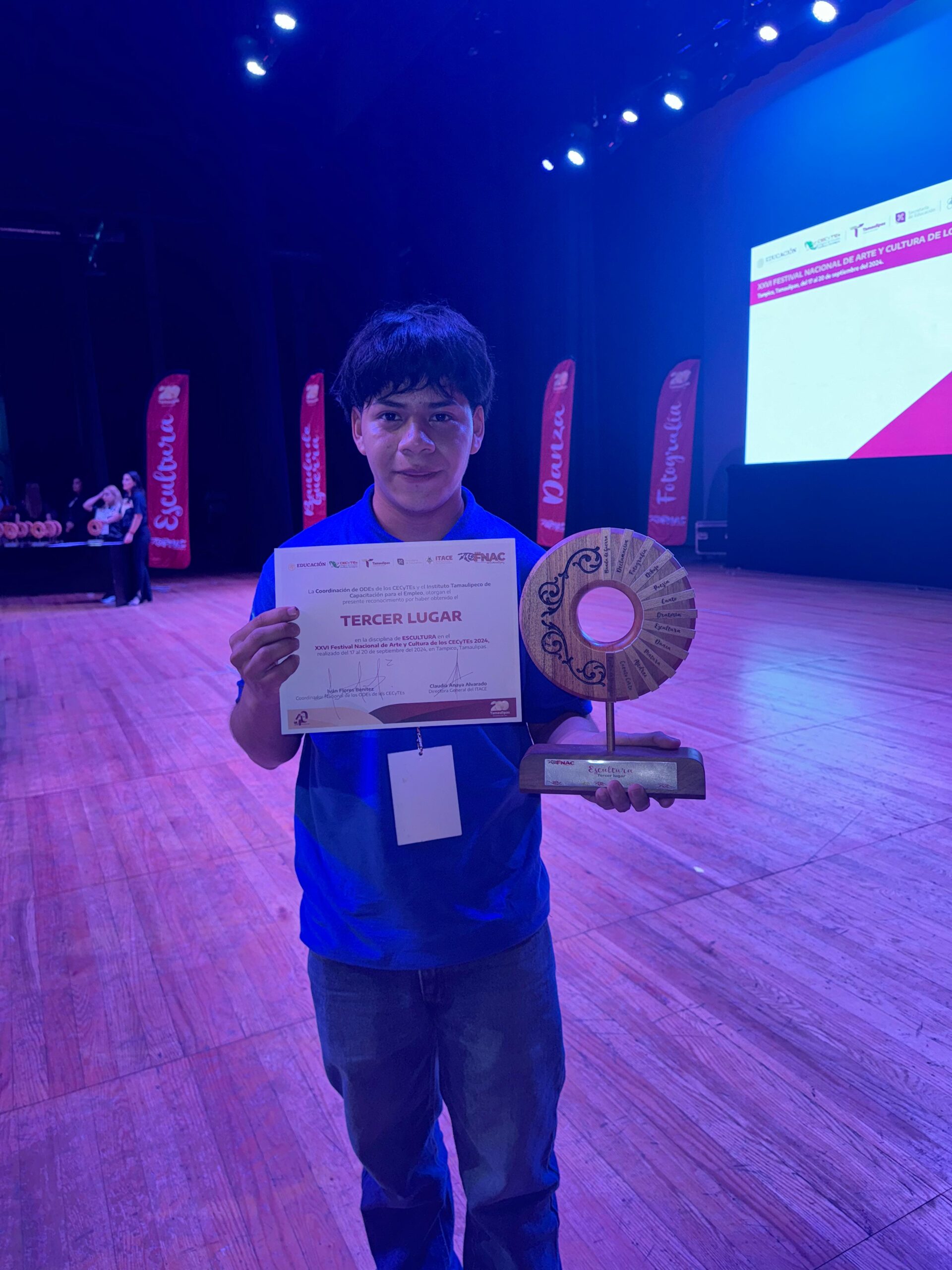 De la participación de las y los alumnos, resultaron ganadores el grupo Ek-balam plantel III del plantel Nuevo Progreso con el primer lugar nacional en danza; Bruno Saldaña, del plantel VIII Tezapotla, con el tercer lugar en dibujo y tercer lugar en escultura por parte del alumno Oscar Reyes del plantel IV Ponciano Arriaga.