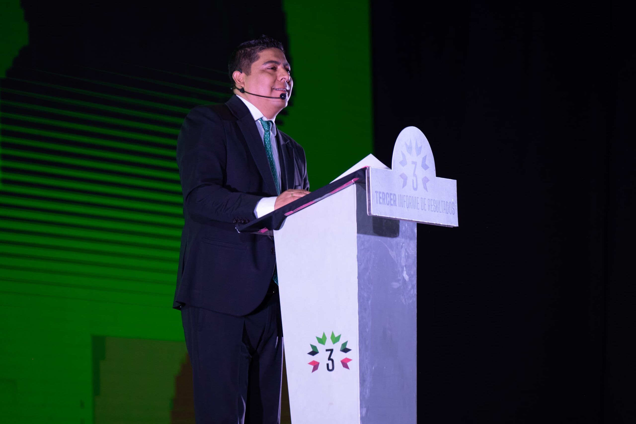 • Desde Matehuala, el Gobernador potosino presentó su Tercer Informe de Resultados y convocó a la ciudadanía a mantenerse unida para seguir transformando al Estado