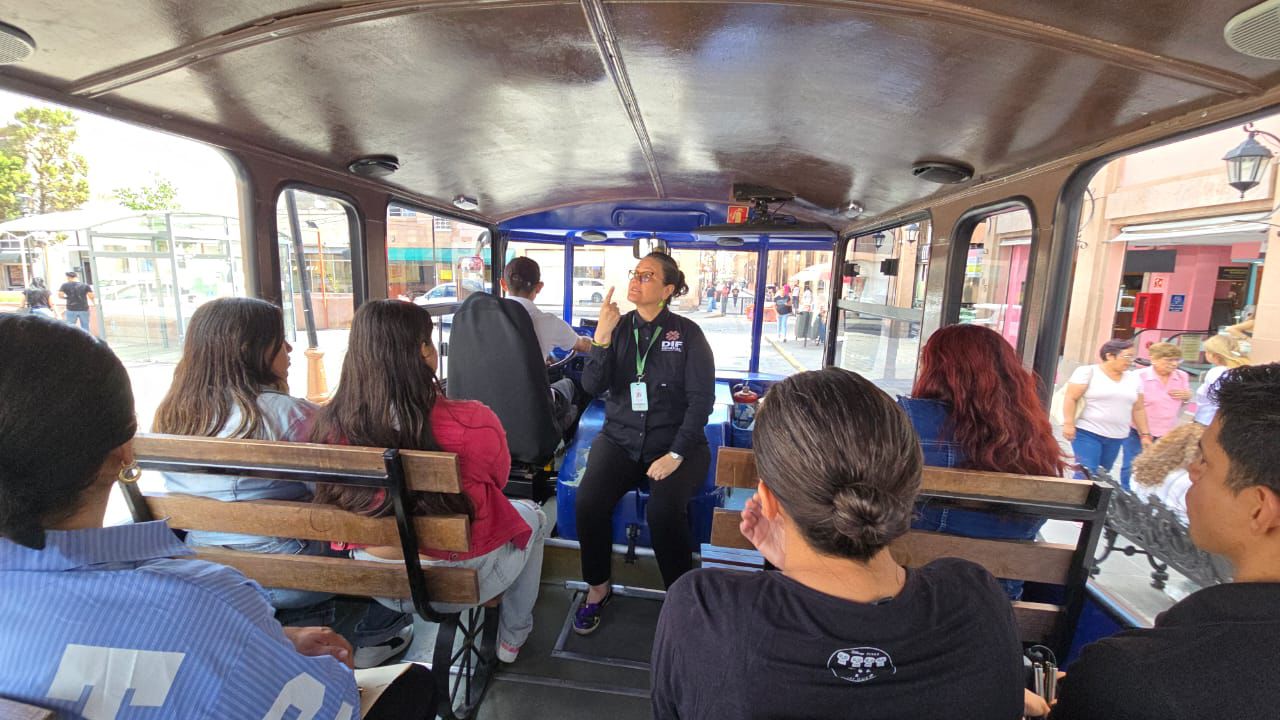 La titular de la dependencia, Yolanda Josefina Cepeda Echavarría, dijo que para el recorrido se contó con el apoyo de personal del Centro de Rehabilitación y Educación Especial (CREE), del Sistema Estatal para el Desarrollo Integral de la Familia (DIF), donde personas de la comunidad sorda disfrutaron de una visita guiada en lengua de señas mexicana, destacando los sitios más emblemáticos de la ciudad, como la plaza de Armas, el Teatro de la Paz y la Catedral Metropolitana.