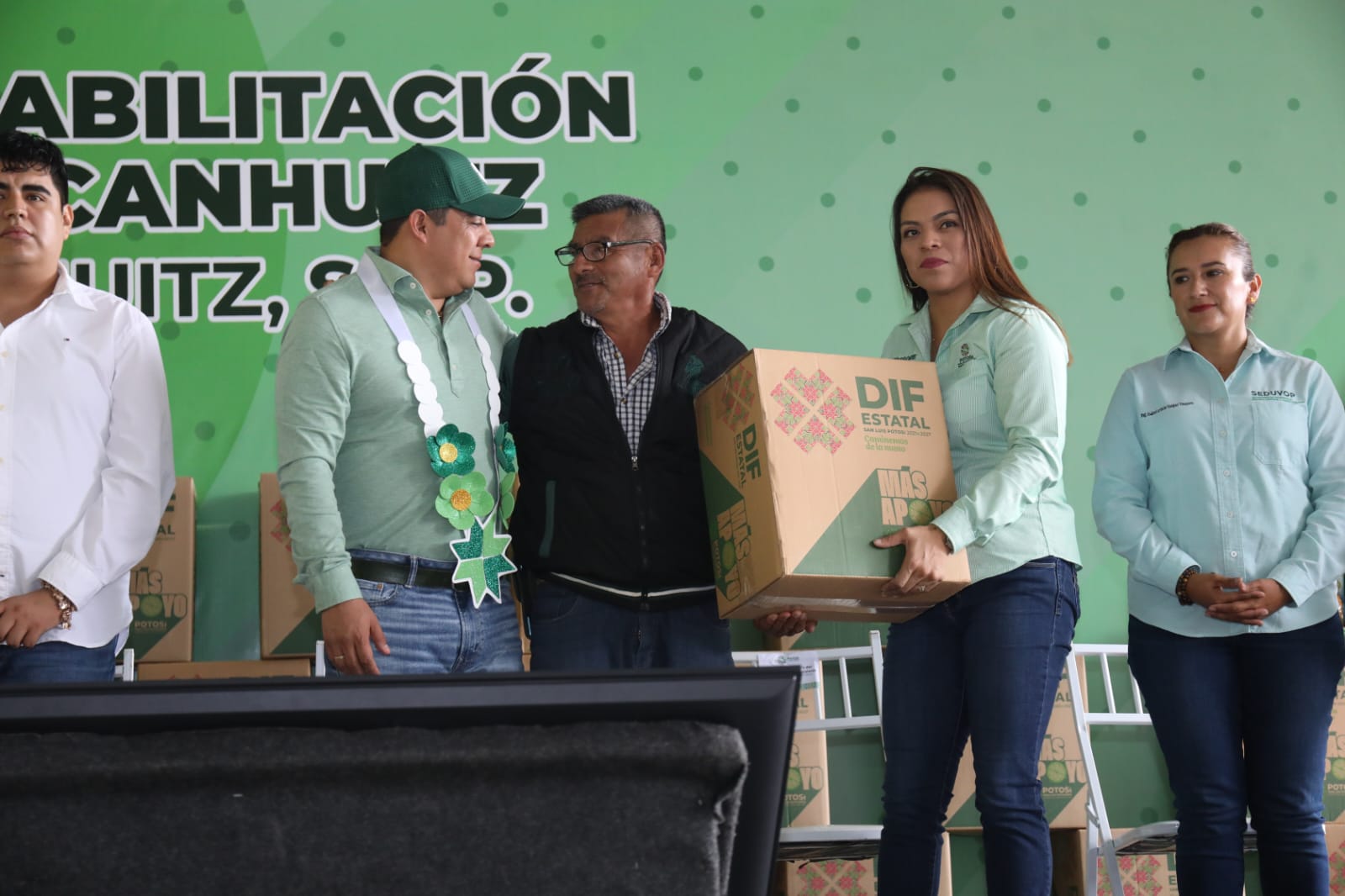 Durante la intensa gira de trabajo por el municipio, Gallardo Cardona también arrancó la entrega del programa Seguridad Alimentaria, que llegará a más de cuatro mil hogares de Tancanhuitz cada 45 días dotando de productos de calidad para mejorar la nutrición de niñas, niños y adultos mayores generando un ahorro en la economía familiar.