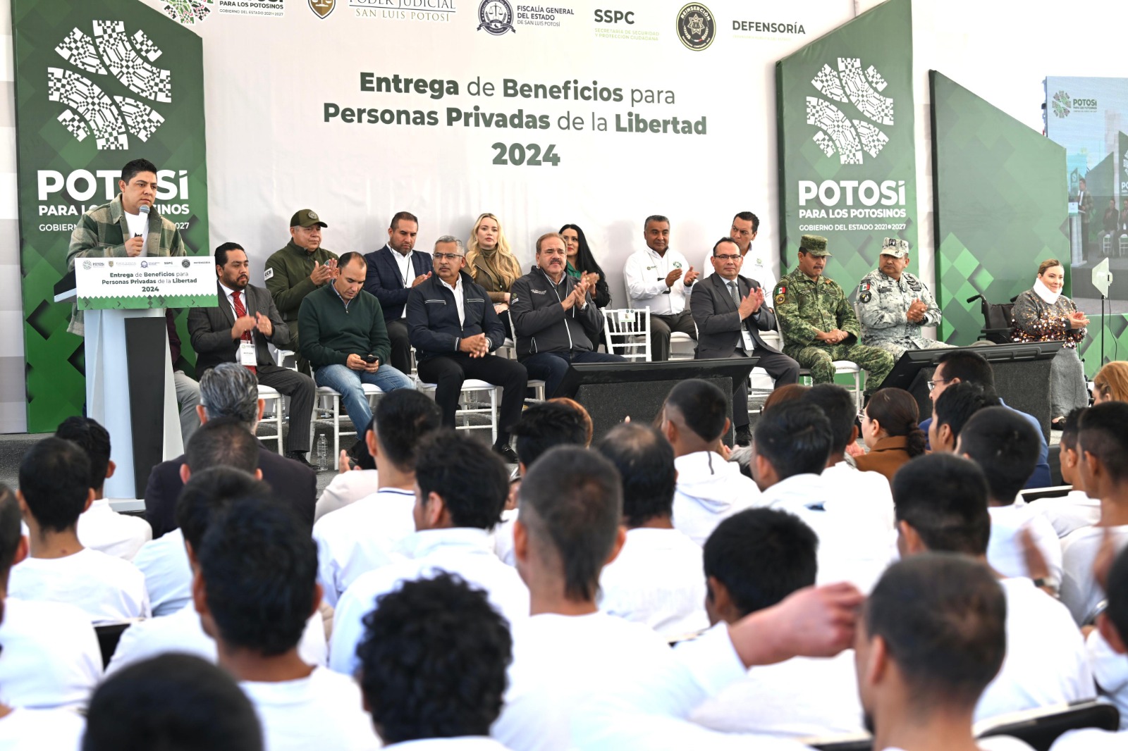 El Gobernador Ricardo Gallardo expuso que estas acciones buscan brindar una nueva oportunidad de vida a las personas que han demostrado su interés con conductas como un buen comportamiento, acatar las leyes y normas y llevar a cabo estudios para regresar con sus familias, y agregó que en tres años de Gobierno este programa ha beneficiado a 514 hombres y mujeres.