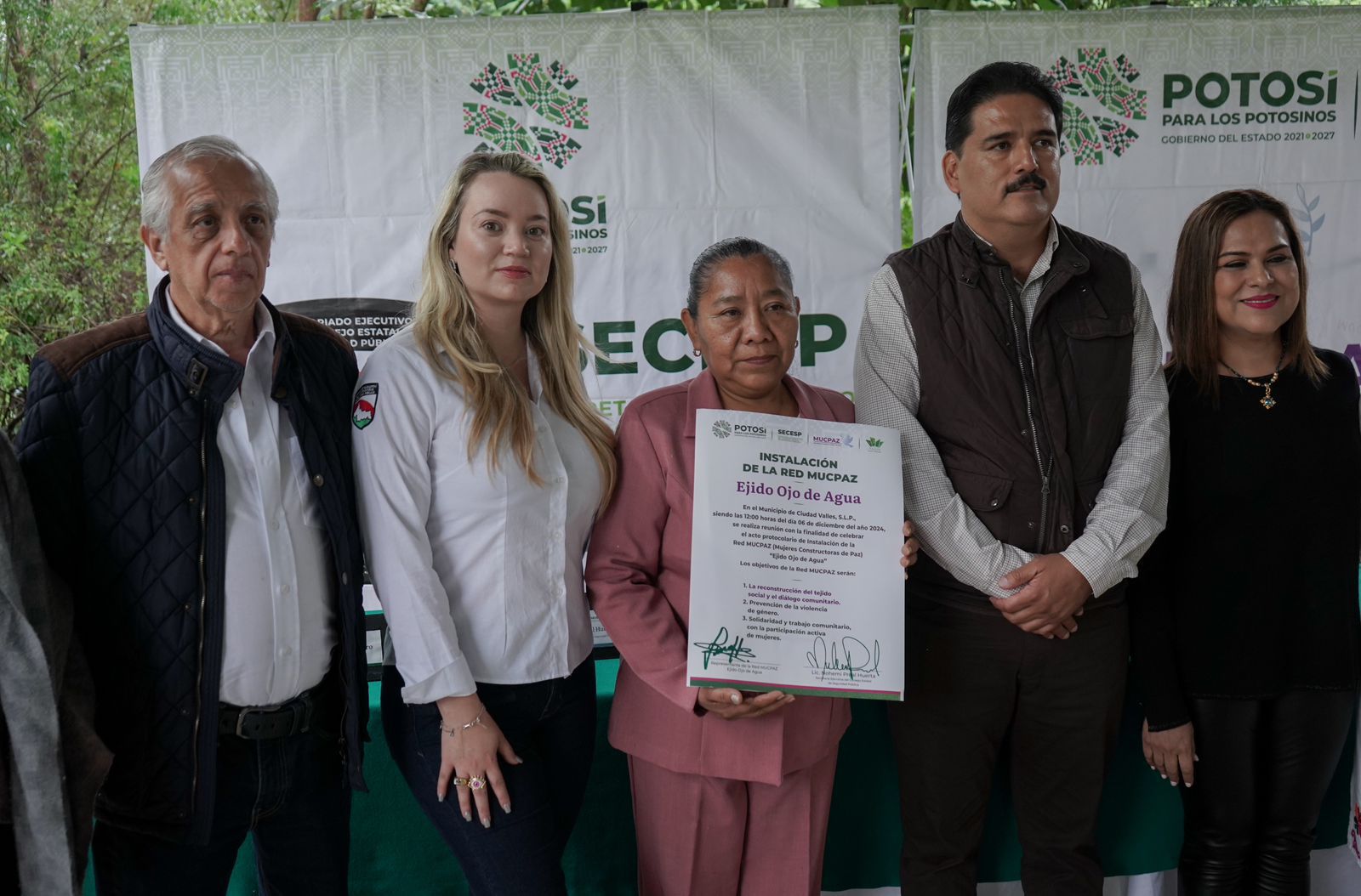 El Secretariado Ejecutivo del Consejo Estatal de Seguridad Pública (SECESP) y el Instituto de Desarrollo Humano y Social de los Pueblos y Comunidades Indígenas (Indepi) instalaron la primera red indígena de Mujeres Constructoras de Paz (Mucpaz) en el Ejido Ojo de Agua, en Ciudad Valles.
