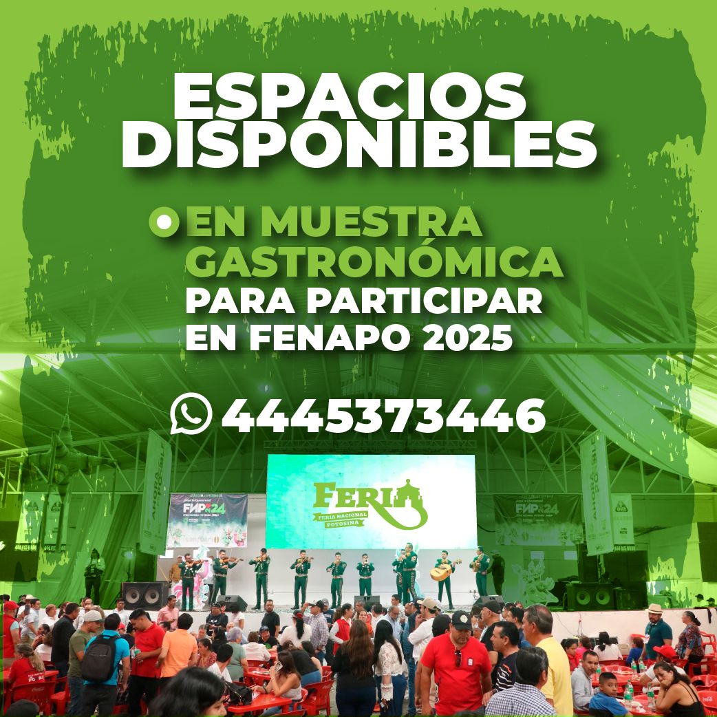 La Feria Nacional Potosina (Fenapo), celebra la diversidad y el sabor de San Luis Potosí a través de su tradicional Muestra Gastronómica, un evento que pone en alto al Estado. Este espacio, que contará con más de 35 cocinas, con los diferentes sazones y sabores que representan lo mejor de nuestra gastronomía, inició su comercialización para la edición 2025 de la mejor Feria de México.