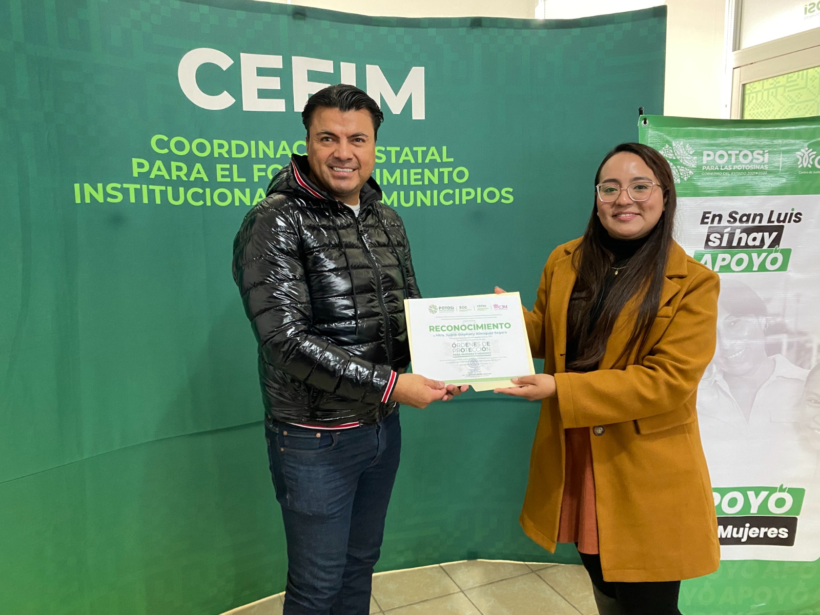 En un esfuerzo para brindar más apoyo a mujeres, niñas y niños víctimas de violencia, la Coordinación Estatal para el Fortalecimiento Institucional de los Municipios (CEFIM), y el Centro de Justicia para Mujeres (CJM), impartieron la capacitación sobre, “Protocolo Estandarizado para la Tramitación, Cumplimiento, Control y Seguimiento de Órdenes de Protección para Mujeres, sus hijas e hijos en el Estado de San Luis Potosí”, dirigida a las y los servidores públicos.