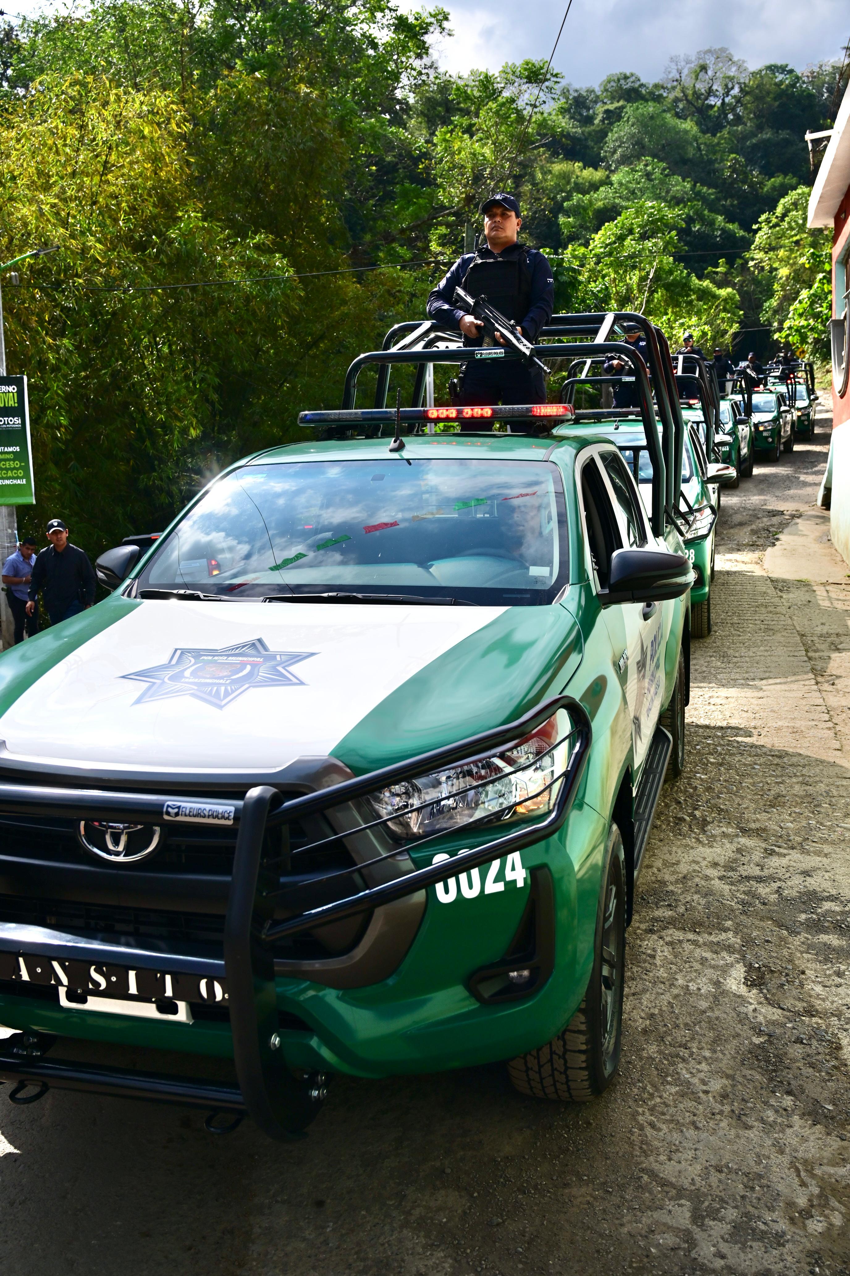 El Gobernador de San Luis Potosí, Ricardo Gallardo Cardona, entregó al ayuntamiento de Tamazunchale un lote de siete patrullas equipadas, tres de las cuales son 4×4, como parte de las acciones integrales en materia de seguridad para impulsar la paz y la prevención en las cuatro regiones, y que reforzarán la protección y salvaguarda de la población y sus bienes en esta demarcación.