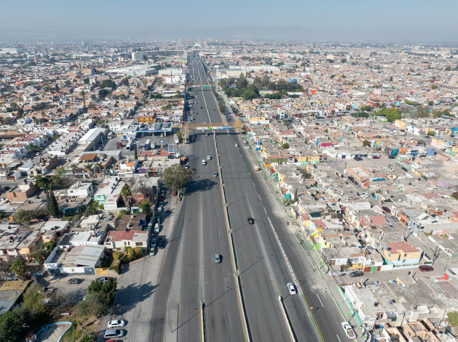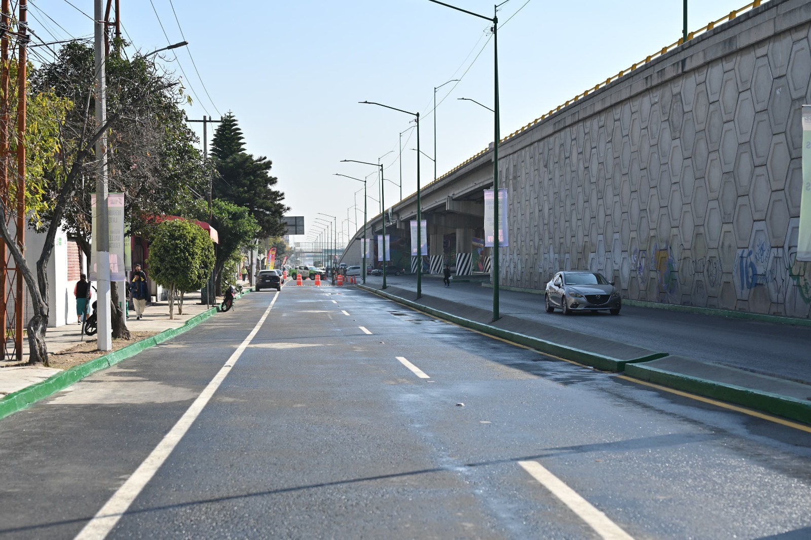 La obra, se realizó en tres meses, y comprende la rehabilitación desde la calle Lago de Texcoco hasta el Distribuidor Benito Juárez, que se encontraba deteriorado, en una longitud de más de dos kilómetros y una superficie de 17 mil metros cuadrados con renivelación de pozos, cajas de válvulas y rejillas pluviales, carpeta asfáltica, semáforos y señalética.