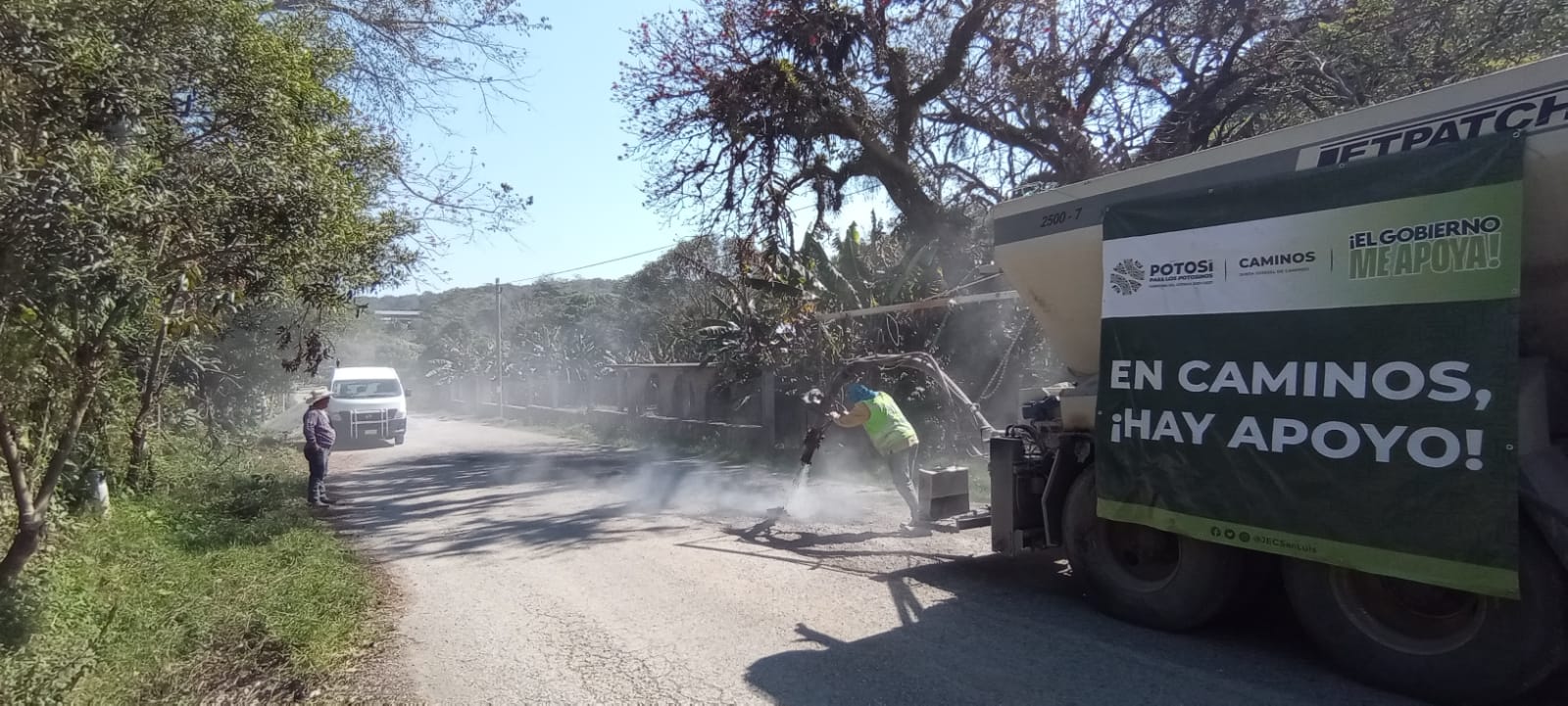 Para llevar más apoyo a las familias de las cuatro regiones, con mejores vialidades y rutas que ofrecen traslados más seguros y rápidos, el Gobierno del Estado, a través de la Junta Estatal de Caminos (JEC) diseñó el programa Bacheo Verde, que inició exitosamente en los municipios de Aquismón, Cedral, Tamasopo y Villa de Arriaga, beneficiando a miles de personas, y que subsanará los años de olvido y el nulo mantenimiento de las carreteras estatales por la herencia maldita.