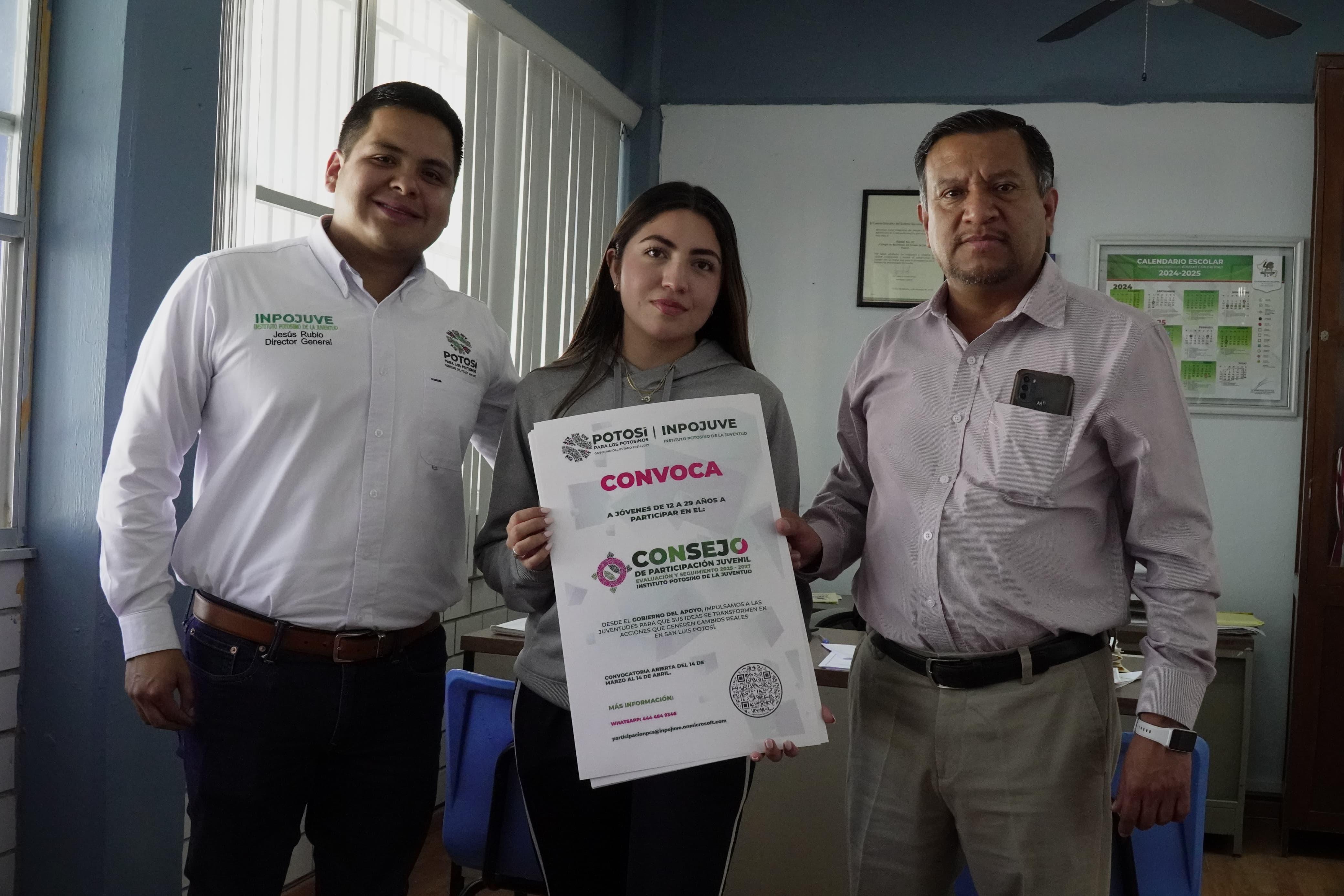 Con la finalidad de lograr mayor participación de jóvenes y acercar más apoyo a las cuatro regiones, el Instituto Potosino de la Juventud (Inpojuve), presentó en el Altiplano la convocatoria del Consejo Juvenil de Evaluación y Participación, un espacio donde las juventudes podrán incidir en la toma de decisiones y contribuir al desarrollo de San Luis Potosí, cuya convocatoria está abierta hasta el 14 de abril.