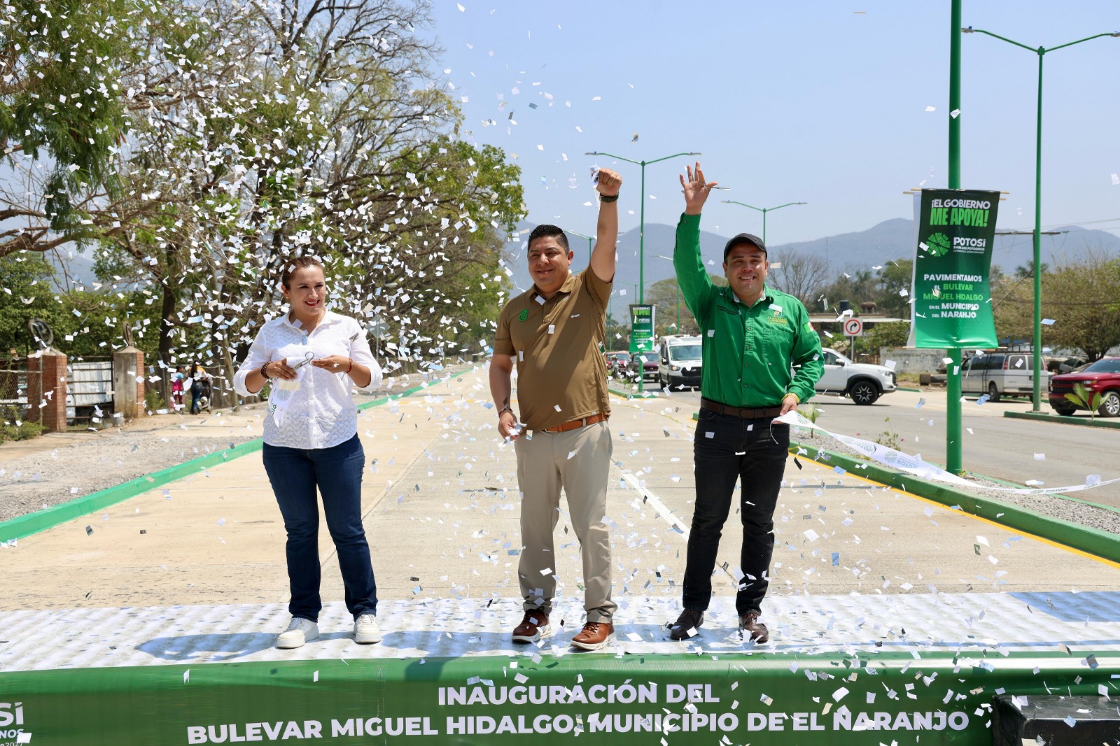 Con una visión de apoyo sin límites, el Gobernador de San Luis Potosí, Ricardo Gallardo Cardona inauguró en gira de trabajo las avenidas Miguel Hidalgo y Benito Juárez, arrancó la rehabilitación del camino La Ceiba- El Limonal y entregó apoyos alimentarios a las familias de El Naranjo.