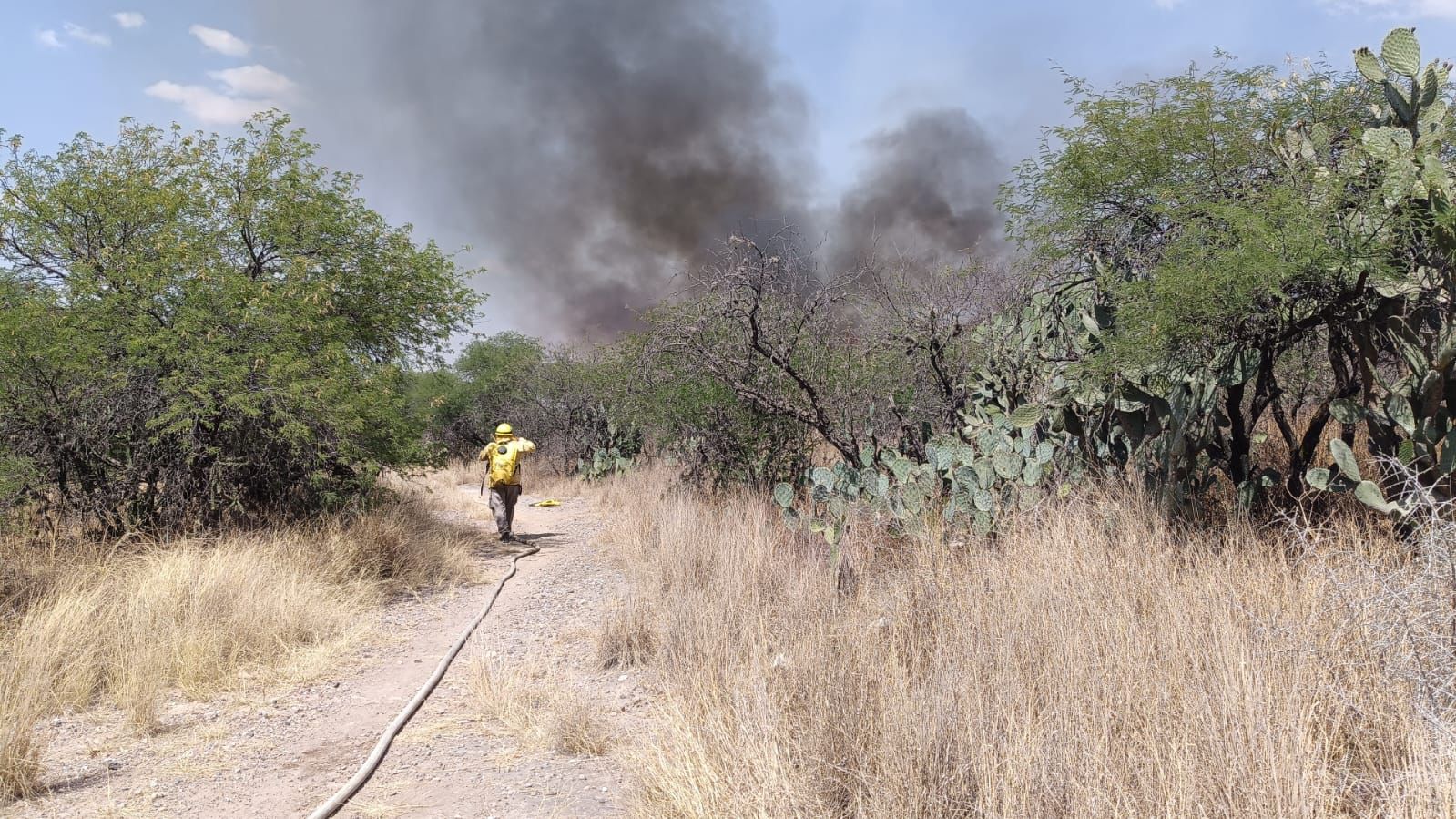 La Coordinación Estatal de Protección Civil, en conjunto con el Cuerpo de Bomberos y Protección Civil Municipal, atiende un incendio de pastizal en la comunidad de Capulines.