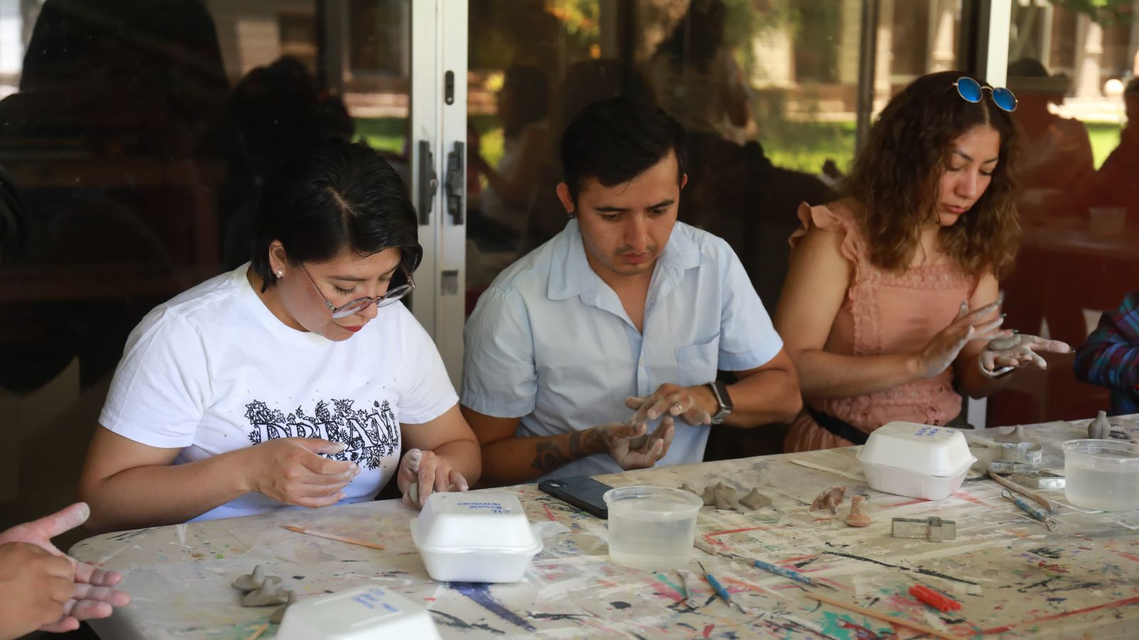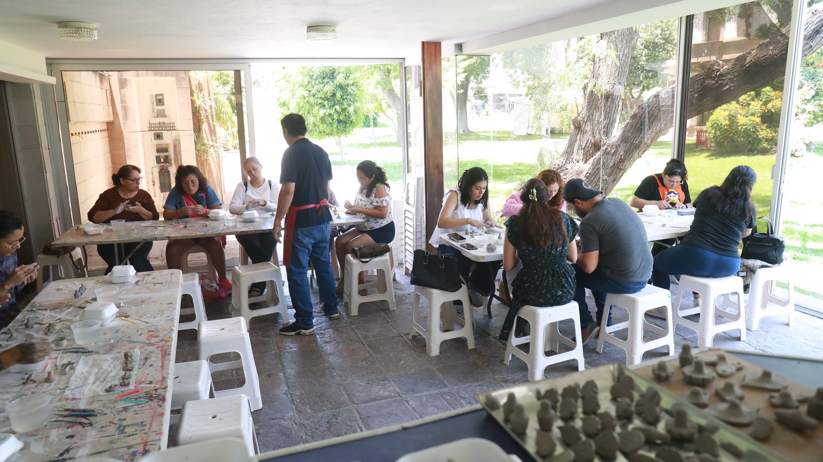 Desde las 11:00 horas, el aroma a tierra húmeda y el sonido de las manos moldeando el barro llenaron el espacio, creando un ambiente de tranquilidad y concentración.