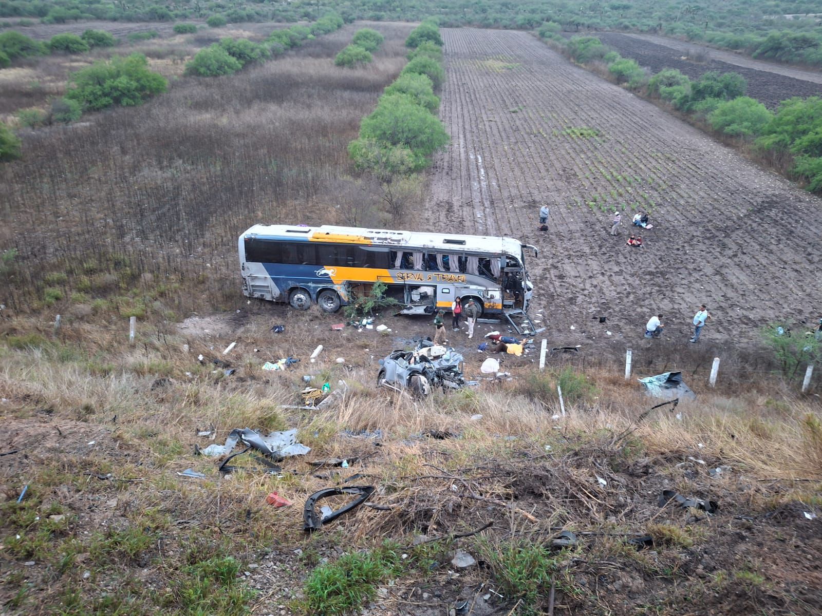 El incidente involucró a un autobús de turismo con destino a la región Huasteca el cual colisionó con un vehículo particular, lo que ocasionó que el conductor del autobús perdiera el control de la unidad y volcara.