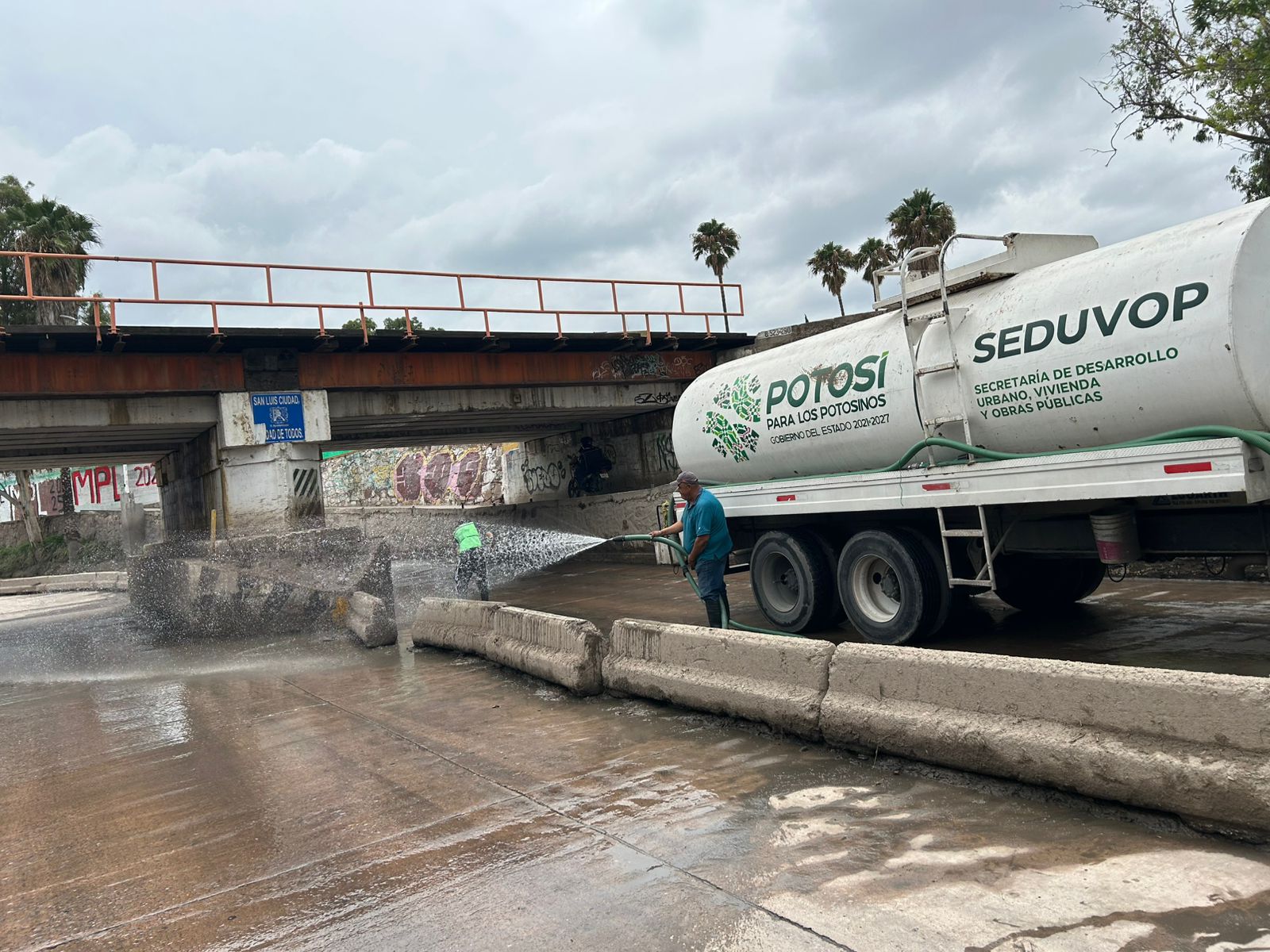 En atención a la instrucción del Gobernador Ricardo Gallardo Cardona, se ha logrado avanzar en la limpieza del Bulevar Río Españita, particularmente en el puente de cruce con las vías ferroviarias en el cruce con la calle Vicente Rivera donde se restableció el tránsito.