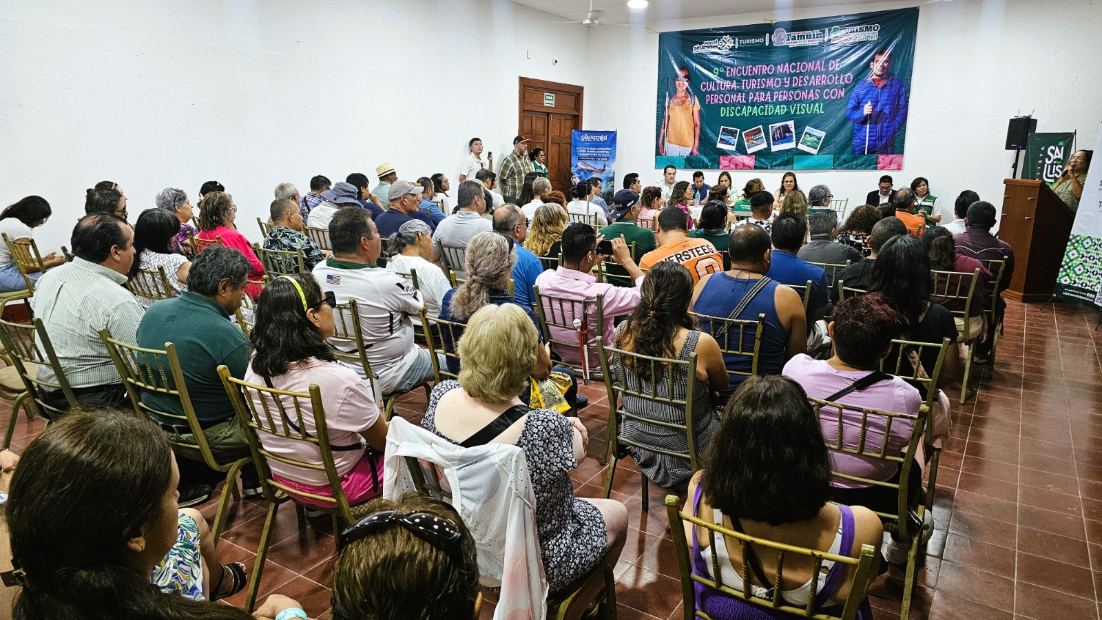 En Tamuín se inauguró el Encuentro Nacional de Cultura, Turismo y Desarrollo Personal para Personas con Discapacidad Visual promoviendo un turismo accesible e incluyente como parte del compromiso del Gobernador Ricardo Gallardo Cardona. Asistentes participarán en talleres, actividades culturales y experiencias turísticas adaptadas que fortalecen su desarrollo personal.