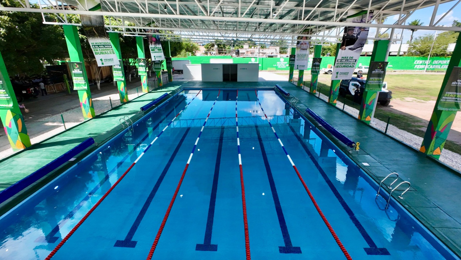 En el evento, donde las muestras de gratitud por parte de las familias y las y los asistentes fueron evidentes, Gallardo Cardona inauguró la alberca techada del Deportivo Ferrocarrilero, un espacio impulsado por el ayuntamiento.